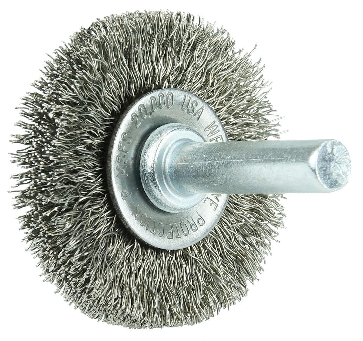 Weiler 17972 Radial Wheel Brush, 1-1/2 in Dia Brush, 0.008 in Dia Crimped Filament/Wire