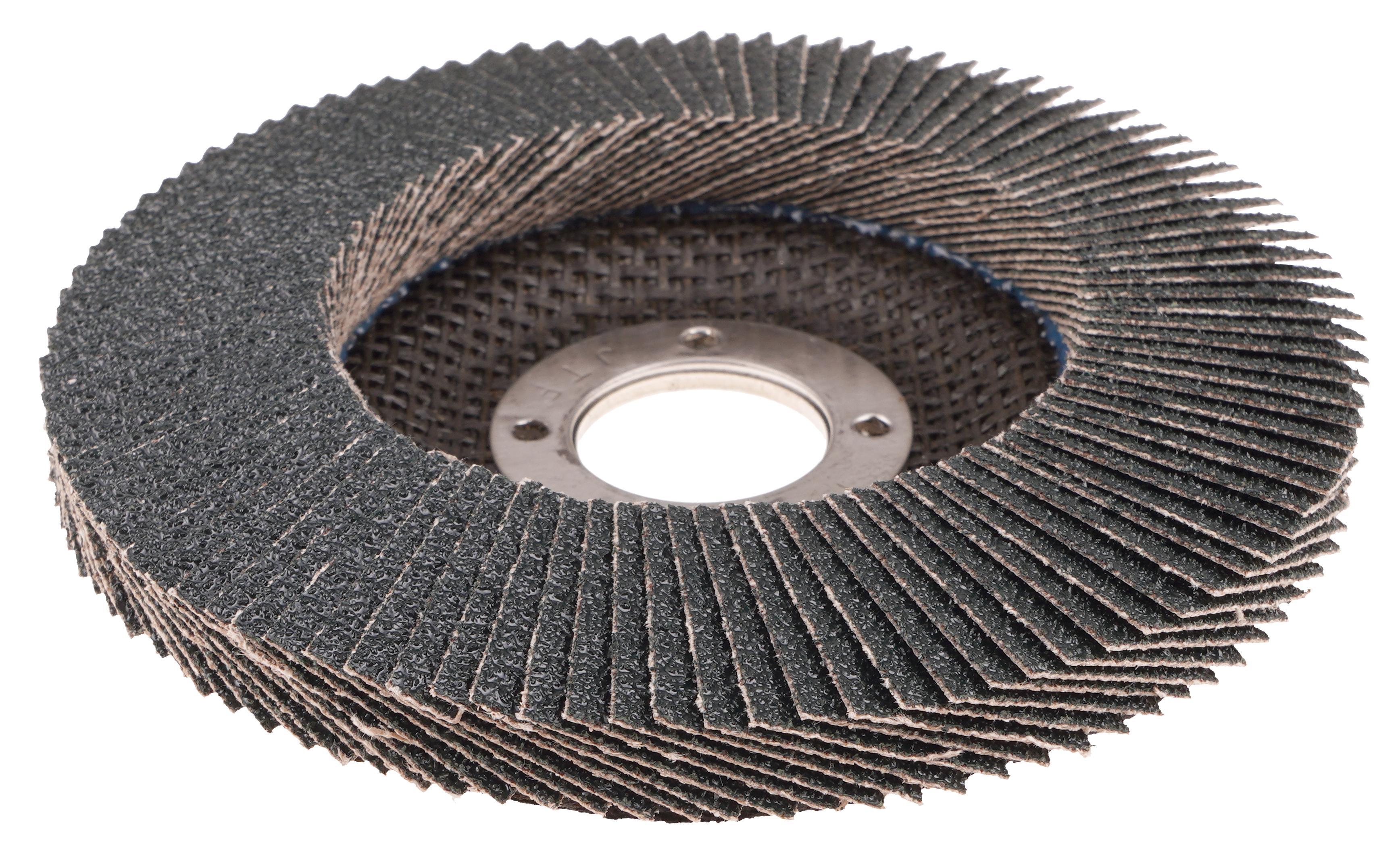 Tiger Paw 51063 Performance Super High Density Abrasive Flap Disc, 4-1/2 in Dia Disc, 7/8 in Center Hole, 80 Grit, Medium Coarse Grade, Zirconia Alumina Abrasive, Type 29/Angled Disc