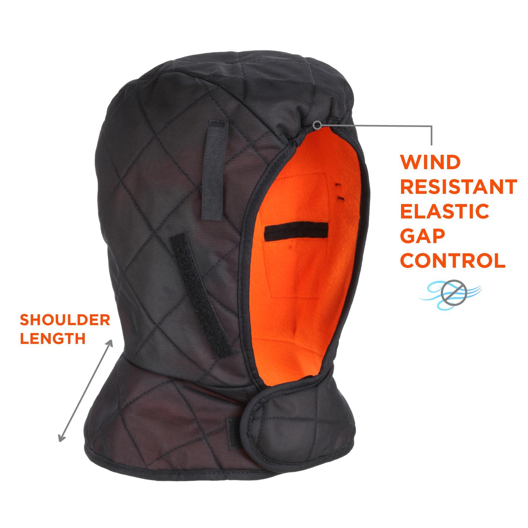 N-Ferno 16867 Shoulder Length Winter Hard Hat Liner With Polyester Shell, Elastic Closure, Quilted Nylon Shell/Polyester Fleece Lining, Black