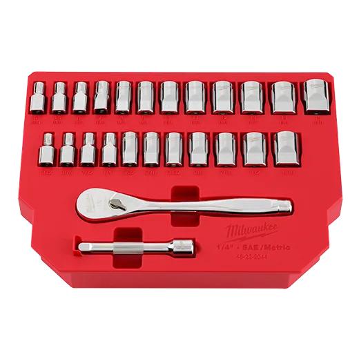 Milwaukee®, 48-22-9044, Ratchet and Socket Set, Four Flat Side, 8.7 in Overall Length, Steel, Chrome