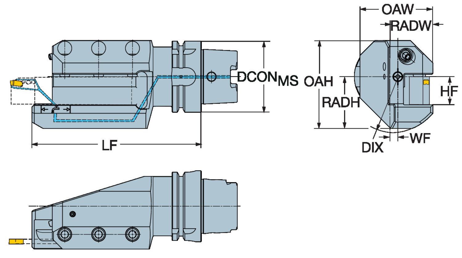Sandvik Coromant 7086870 HSK to Blade With Internal Coolant Channel, 25 mm W x 25 mm H Shank, 100 mm