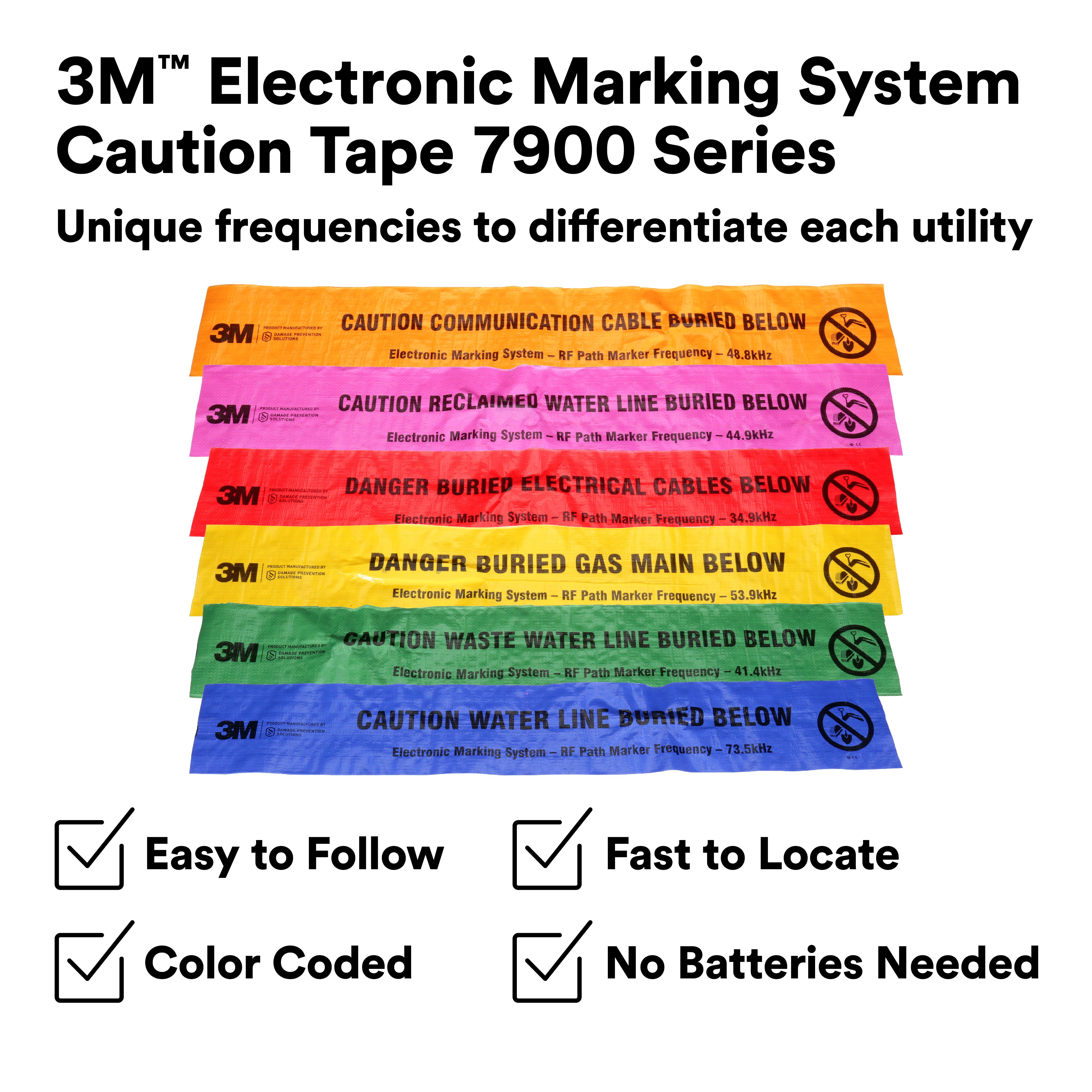 3M 7100254241 7901 Caution Tape, Orange, 500 ft L 6 in W