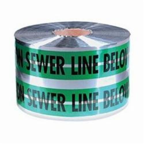 Empire®, 31-055, Underground Utility Tape, Detectable Premium, Green, 6 in Width, 1000 ft Length, 5 mil Thickness, Foil/Polymer/Polyethylene, Legend: Caution Sewer Line Below