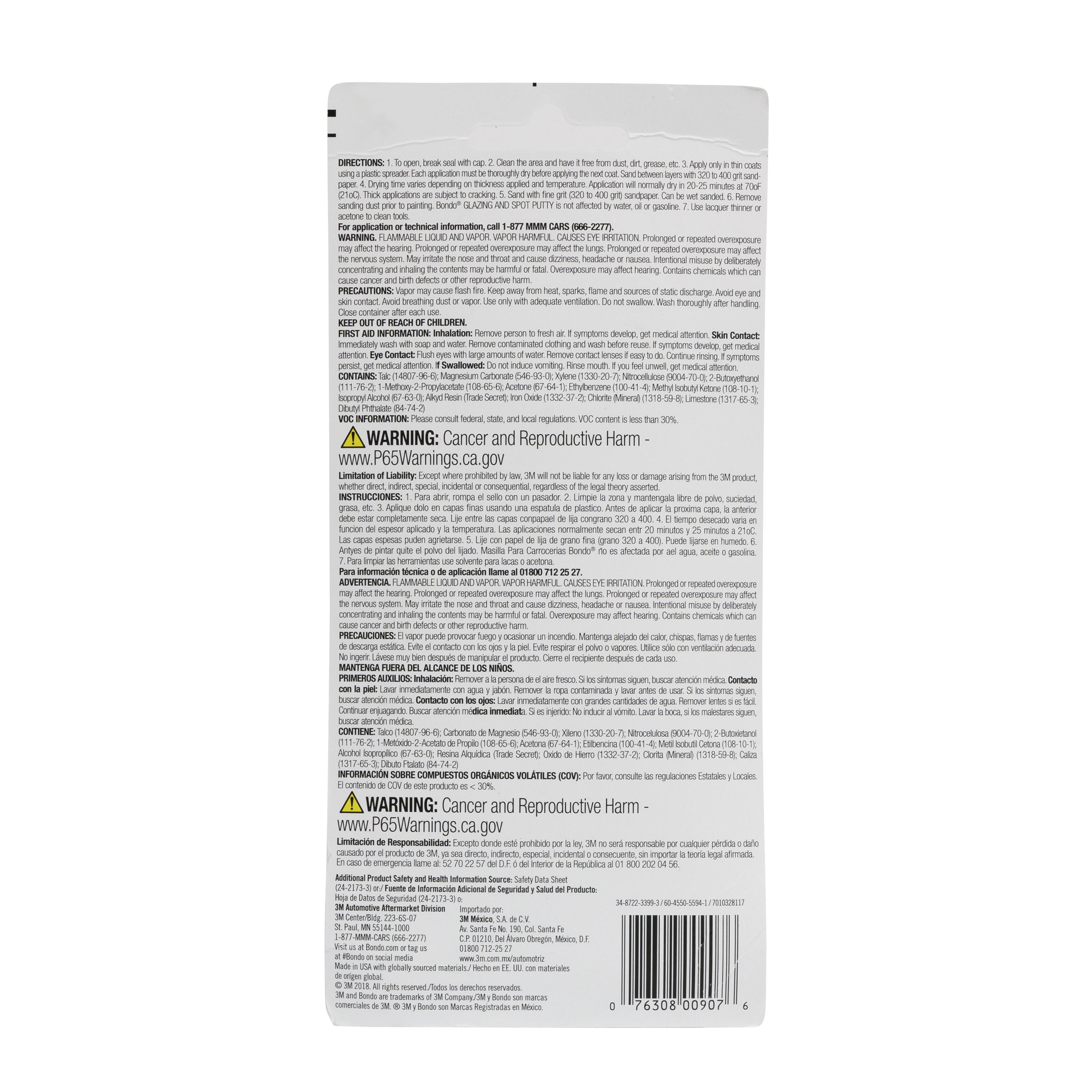 Bondo 7010328117 907 Glazing and Spot Putty, 4.5 oz, Red