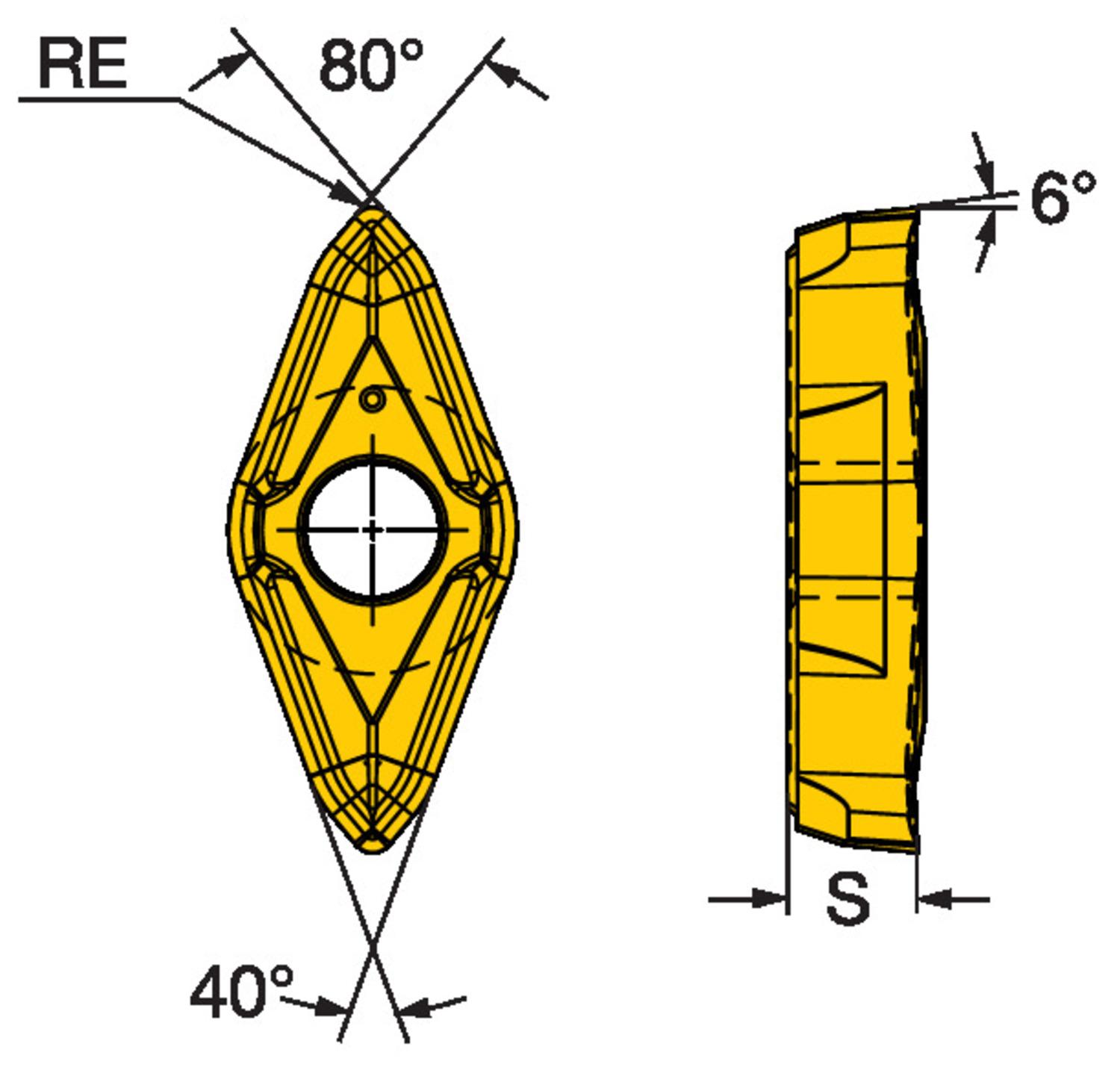 Sandvik Coromant 7860972 CoroTurn Prime Turning Insert, ANSI Code: CP-B1108-H3W 4425, CP-B Insert, 11 Insert, Diamond Shape, Left/Right Hand Cutting, For Use On Steel, Carbide, Manufacturers Grade: 4425