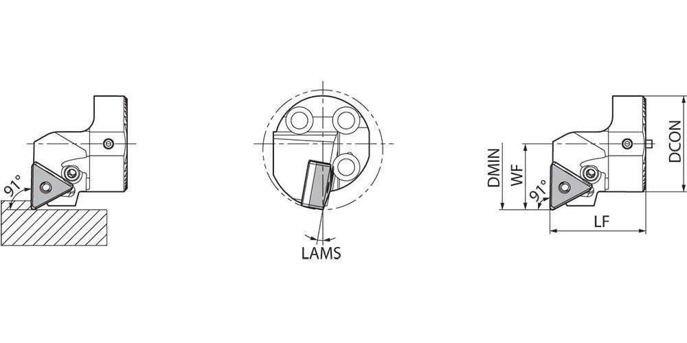 KYOCERA THC15297 91 deg Right Hand Negative Rake Replaceable Boring Bar Head, TN_G/TN_A/TN_M Insert