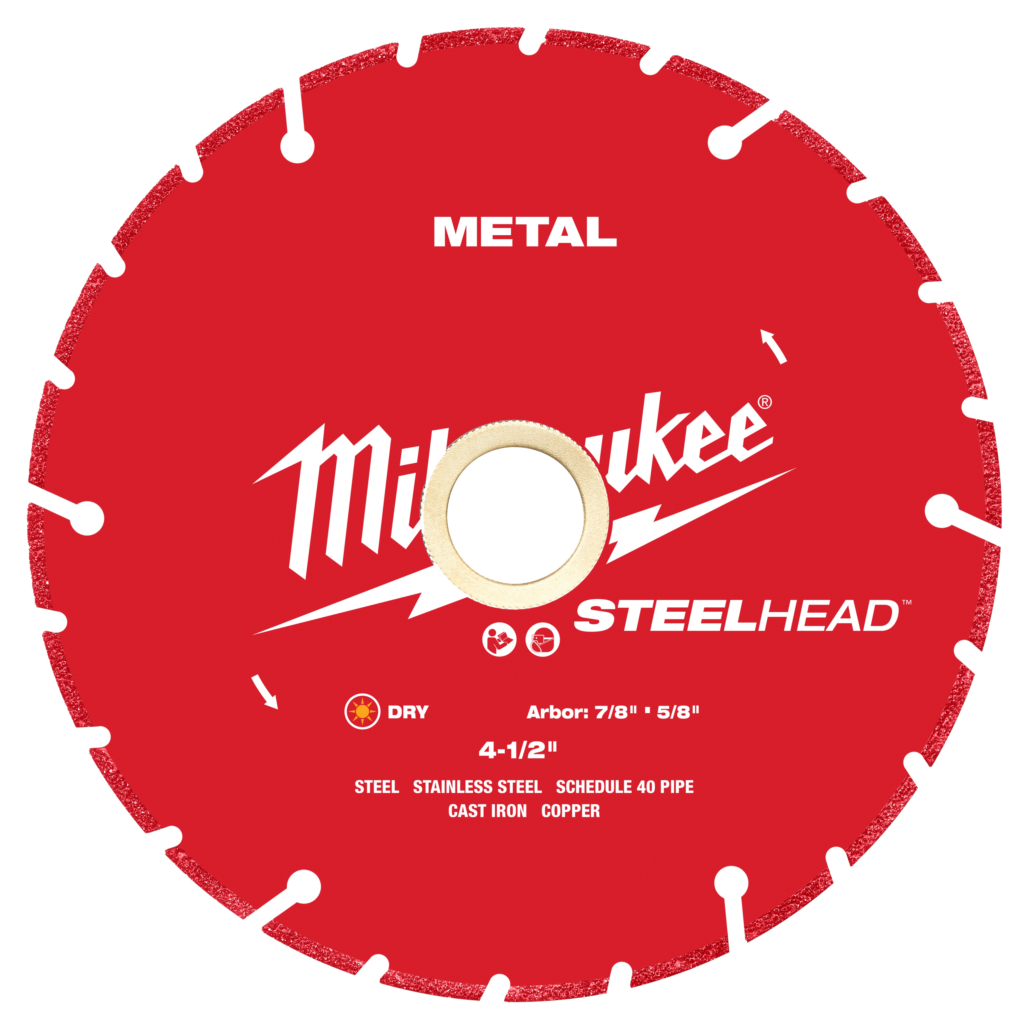 Milwaukee SteelHead 49-93-7805 Segmented Diamond Cut-Off Blade, 4-1/2 in Dia Blade, 0.05 in W, 5/8 to 7/8 in Arbor/Shank, Dry/Dry Cutting