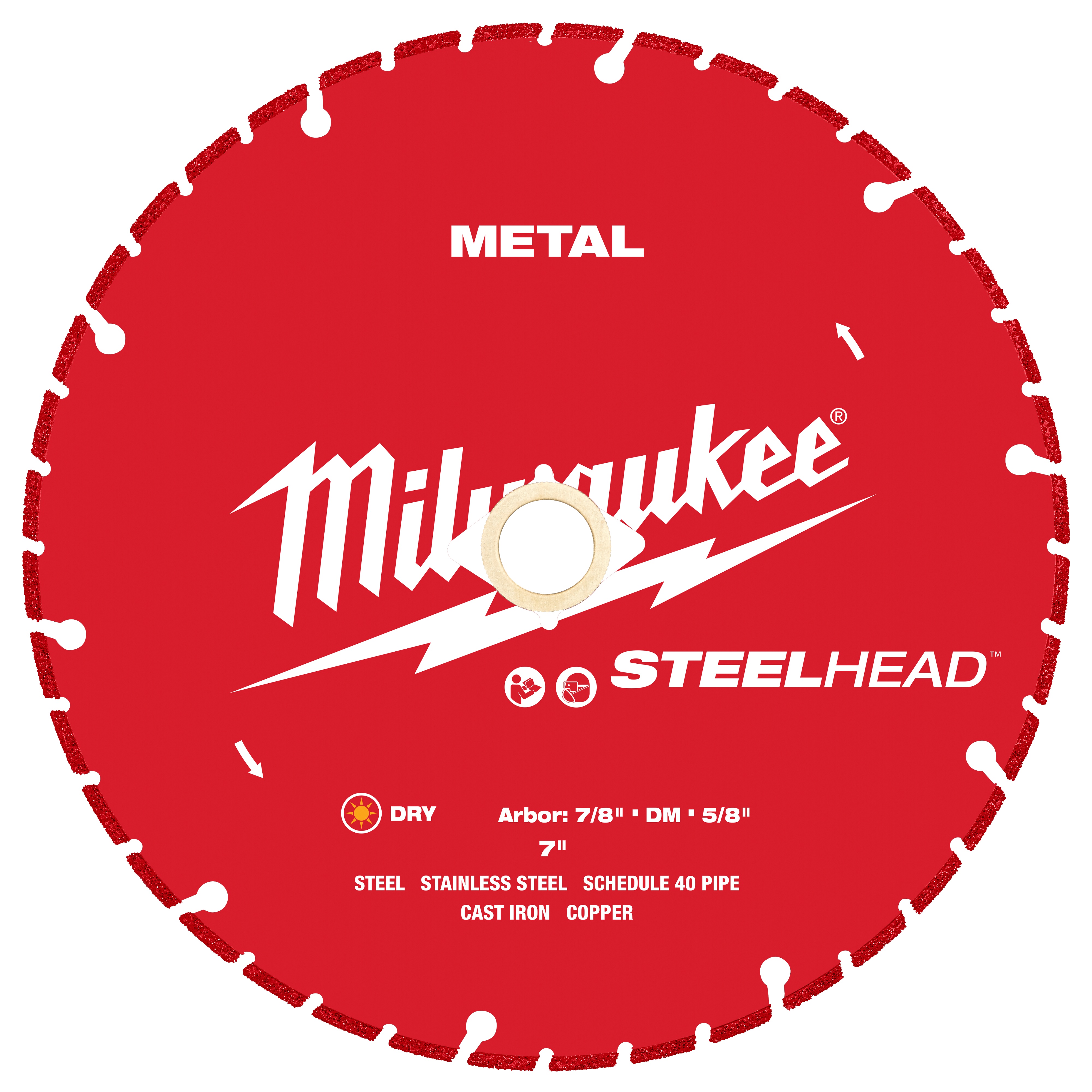 Milwaukee SteelHead 49-93-7820 Segmented Diamond Cut-Off Blade, 7 in Dia Blade, 0.6 in W, 7/8 in, 5/8 in Arbor/Shank, Dry/Dry Cutting