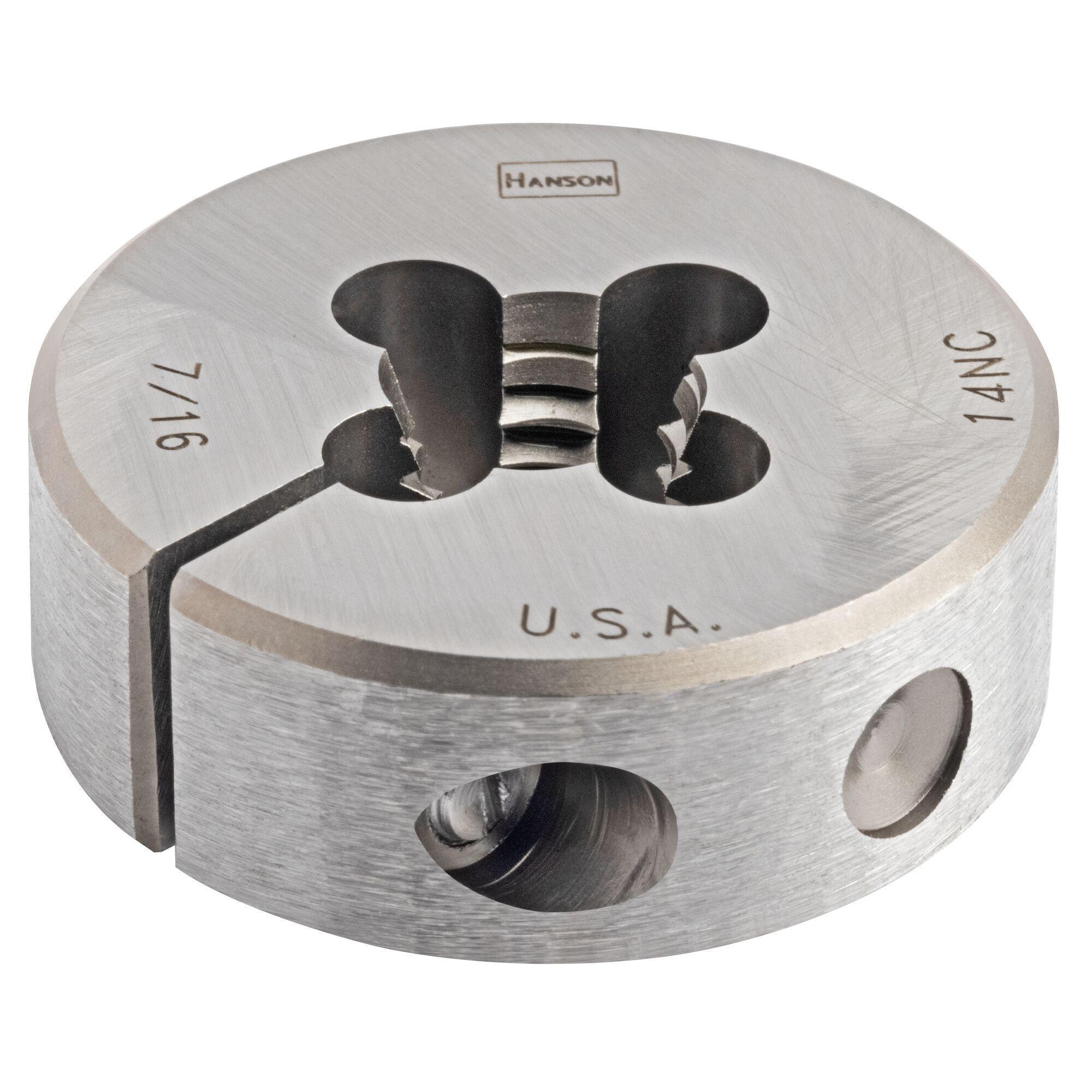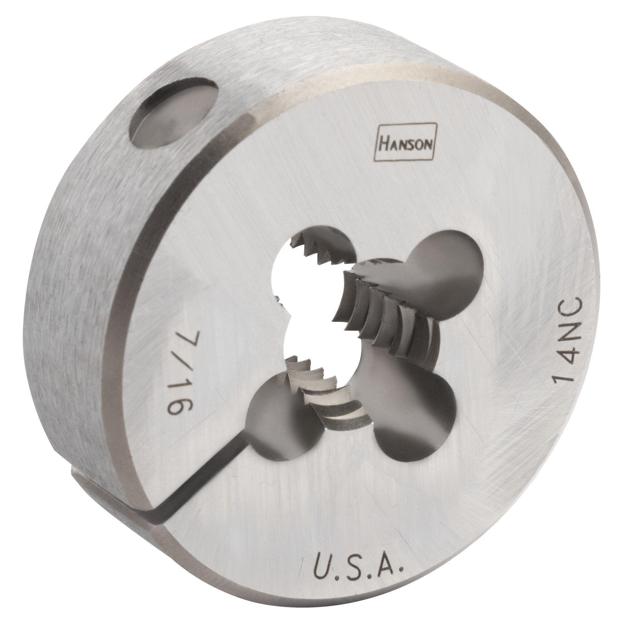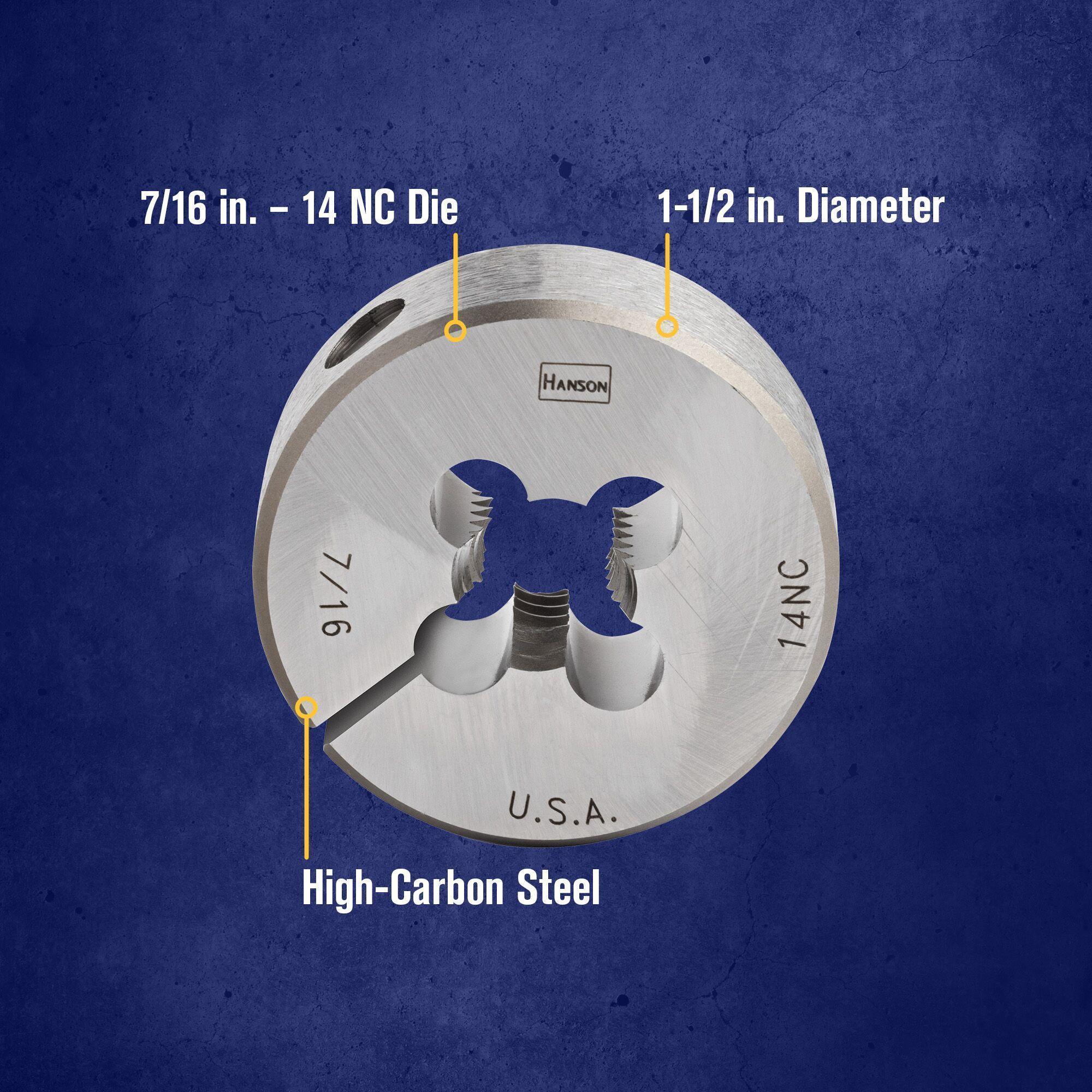 - Die Outside Diameter:1-1/2 inMaterial:High Carbon SteelMeasurement System:ImperialThread Direction:RightThread Size:7/16-14Thread Type:UNCType:Adjustable Round