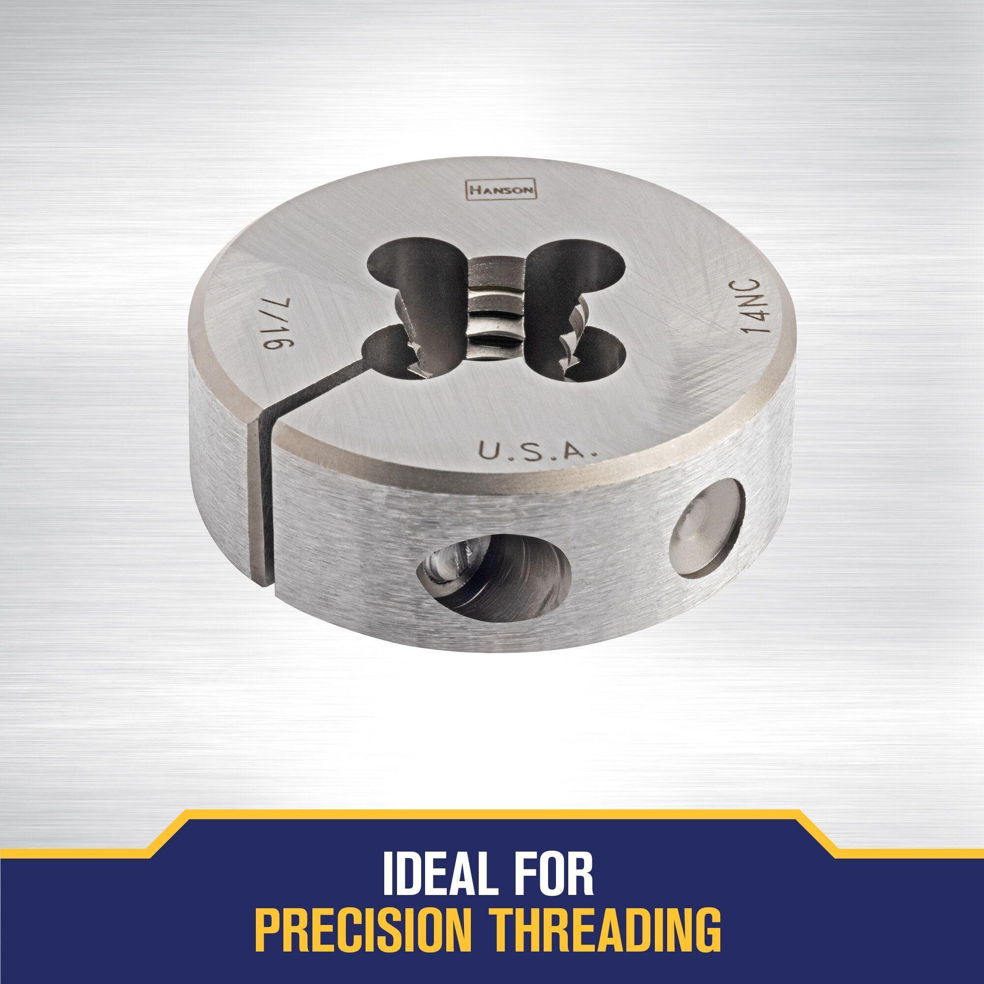 Irwin Hanson 4039ZR Adjustable Round Threading Die, 7/16-14 Thread UNC Thread, 1-1/2 in OD Die, High Carbon Steel