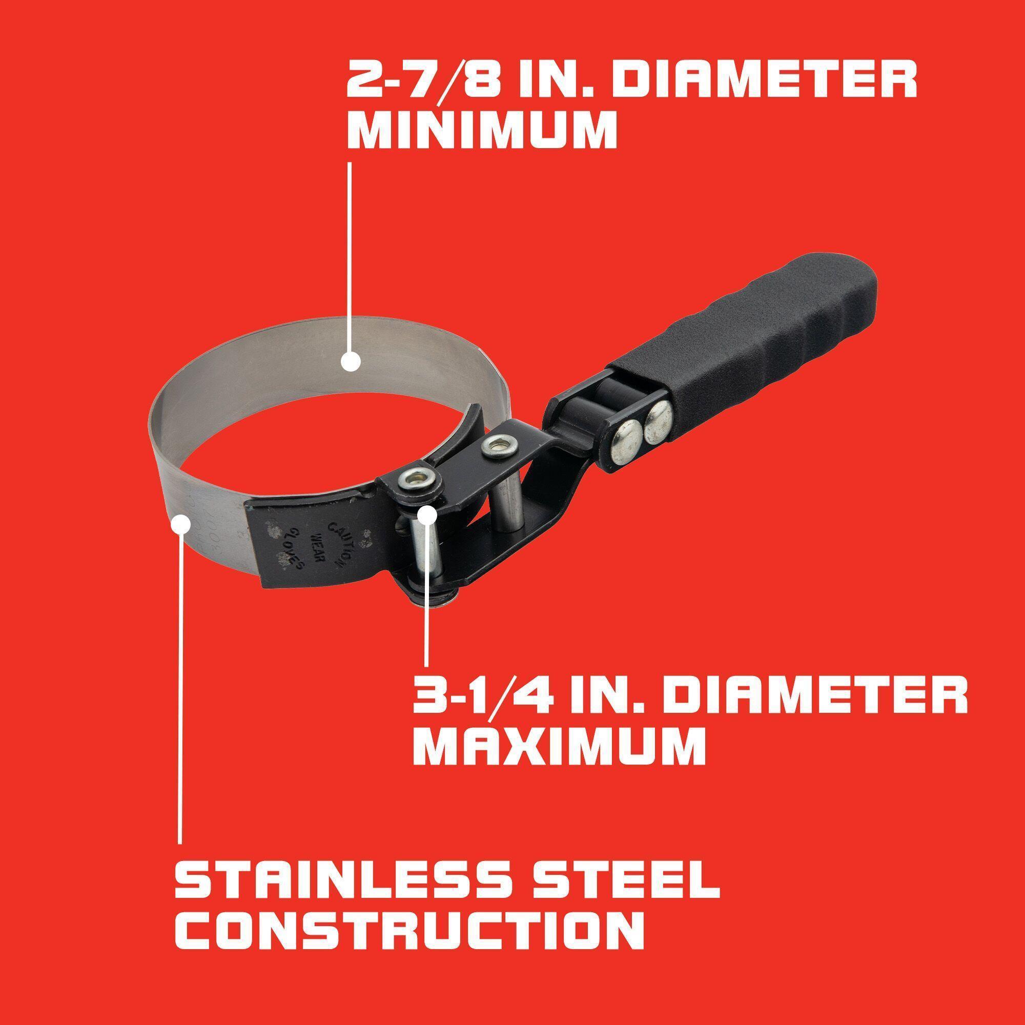 Proto J3007 Oil Filter Wrench, 2-7/8 to 3-1/4 in, 8 in L, For Use With 2-7/8 to 3-1/4 in Dia Filter, Stainless Steel