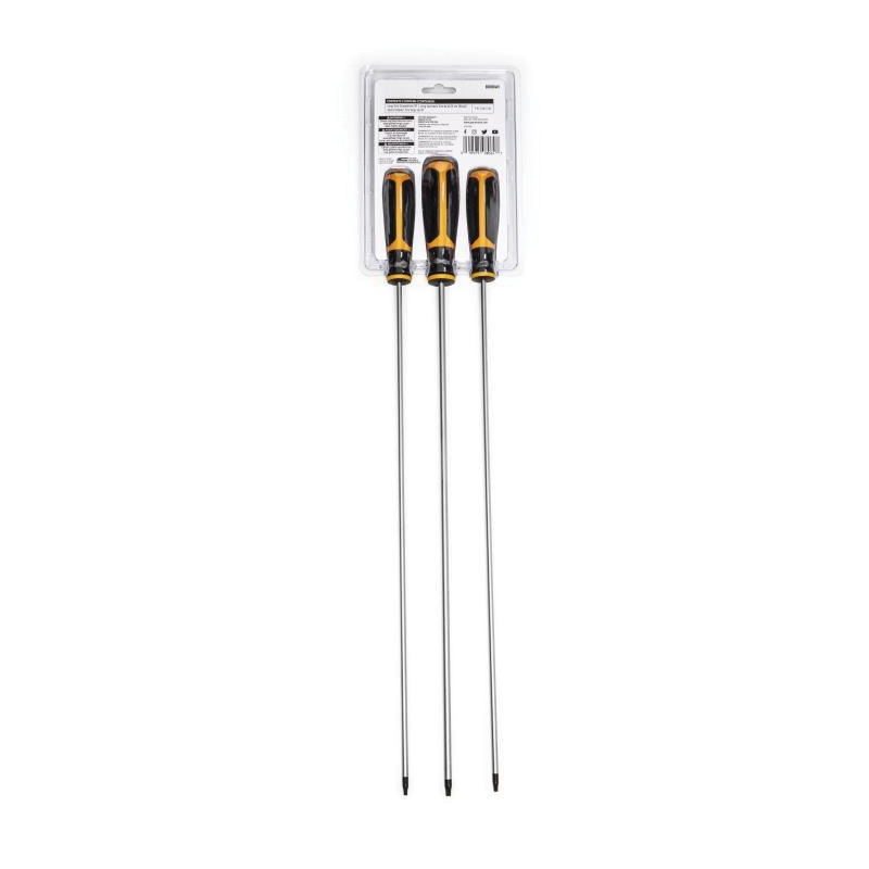 - ESD-Safe:NoFinish:Black OxideHandle Type:StraightInsulated:NoMagnetized Tip:NoMaterial:Alloy SteelNumber of Pieces:3Screwdriver Types Included:T15 T20 T25 Torx®Specifications:Black and Molten Orange Handle, Round BladeSpecifications Met:ASME B107.15