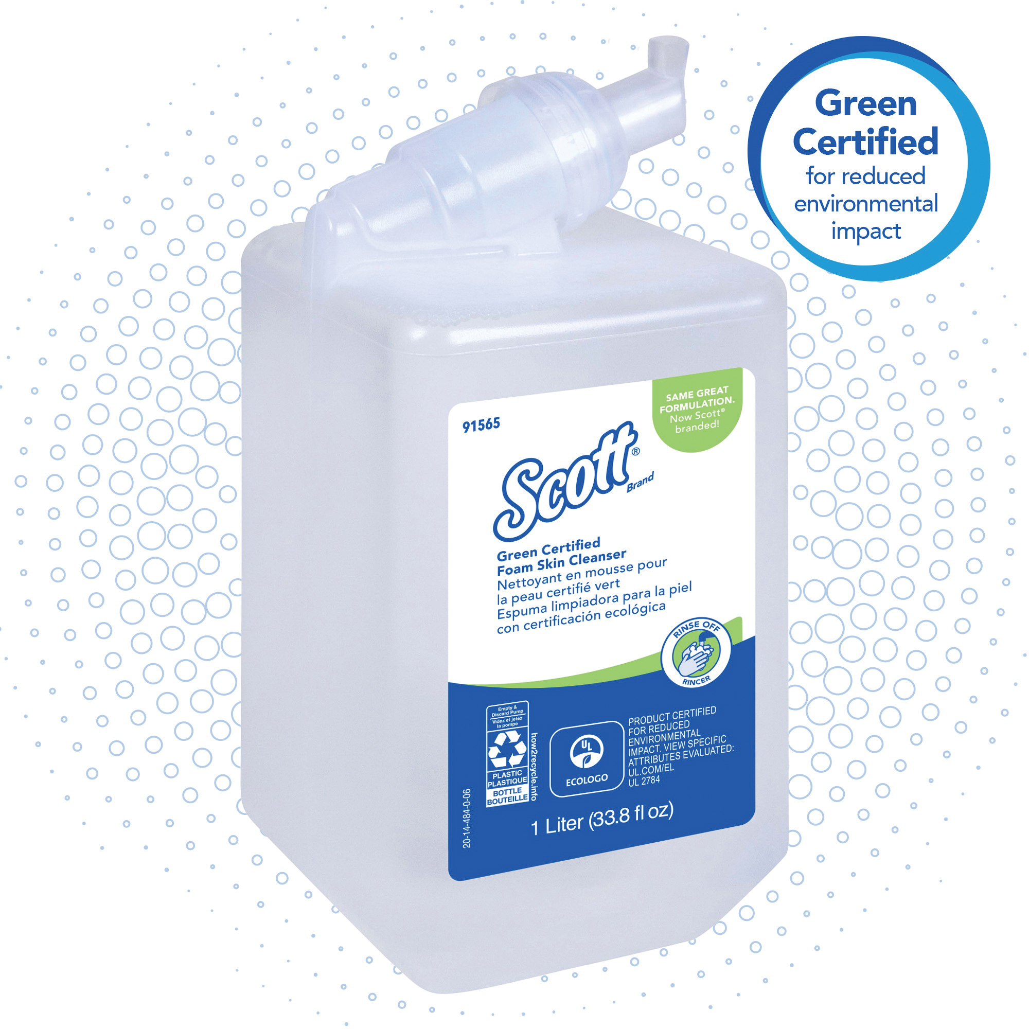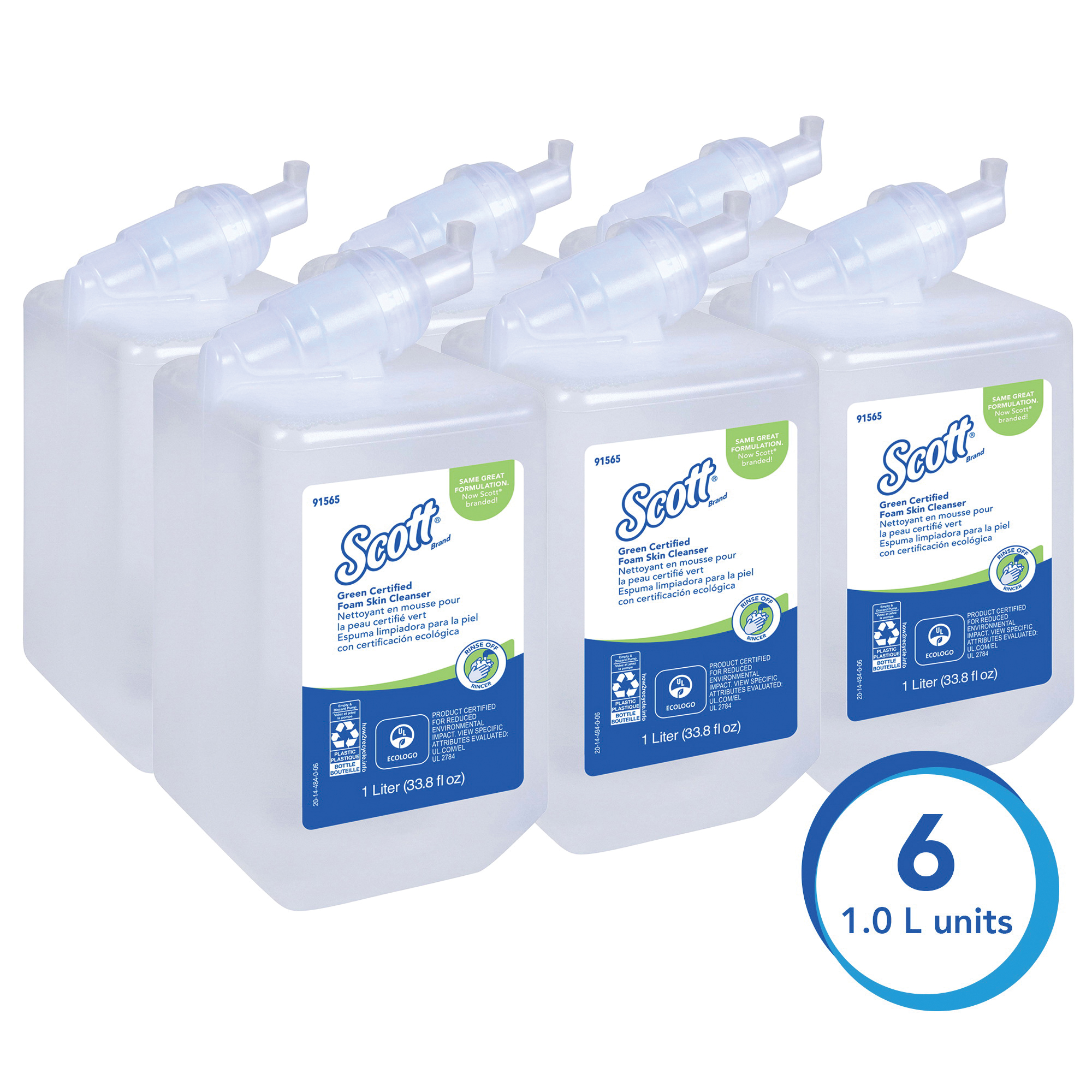 Scott 91565 Dye Free Luxury Foam Skin Cleanser, 1 L, Cassette, Liquid, Unscented, Clear Glass