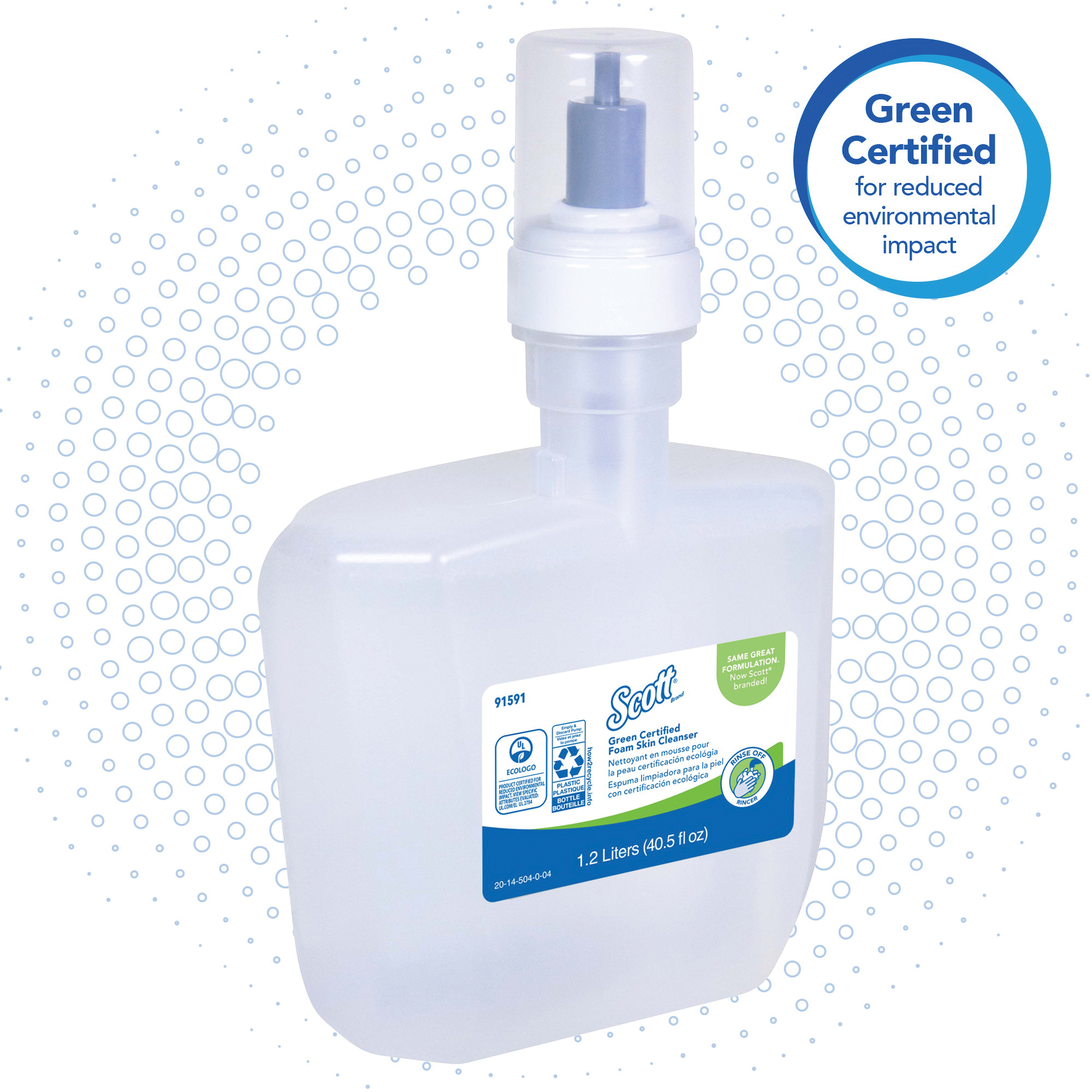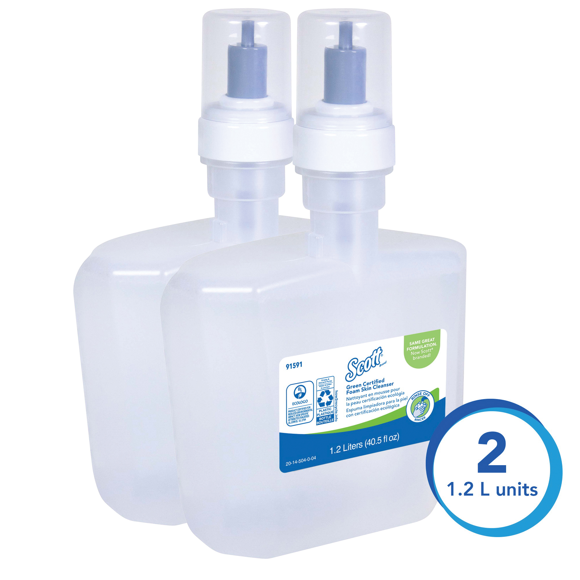 Scott 91591 Dye Free Luxury Foam Skin Cleanser, 1.2 L, Cassette, Liquid, Unscented, Clear Glass