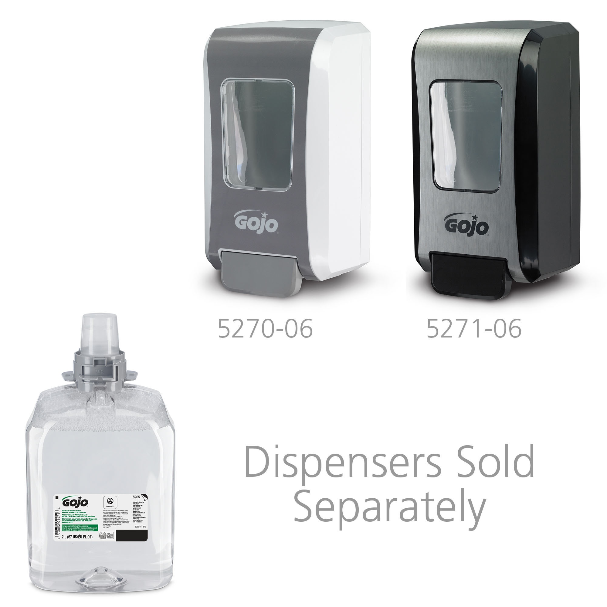 GOJO 5265-02 FMX-20 Hand Cleaner, 2000 mL Nominal, Dispenser Refill Package, Foam Form, Dye Free/Odorless Odor/Scent, Clear/Colorless to Pale Yellow