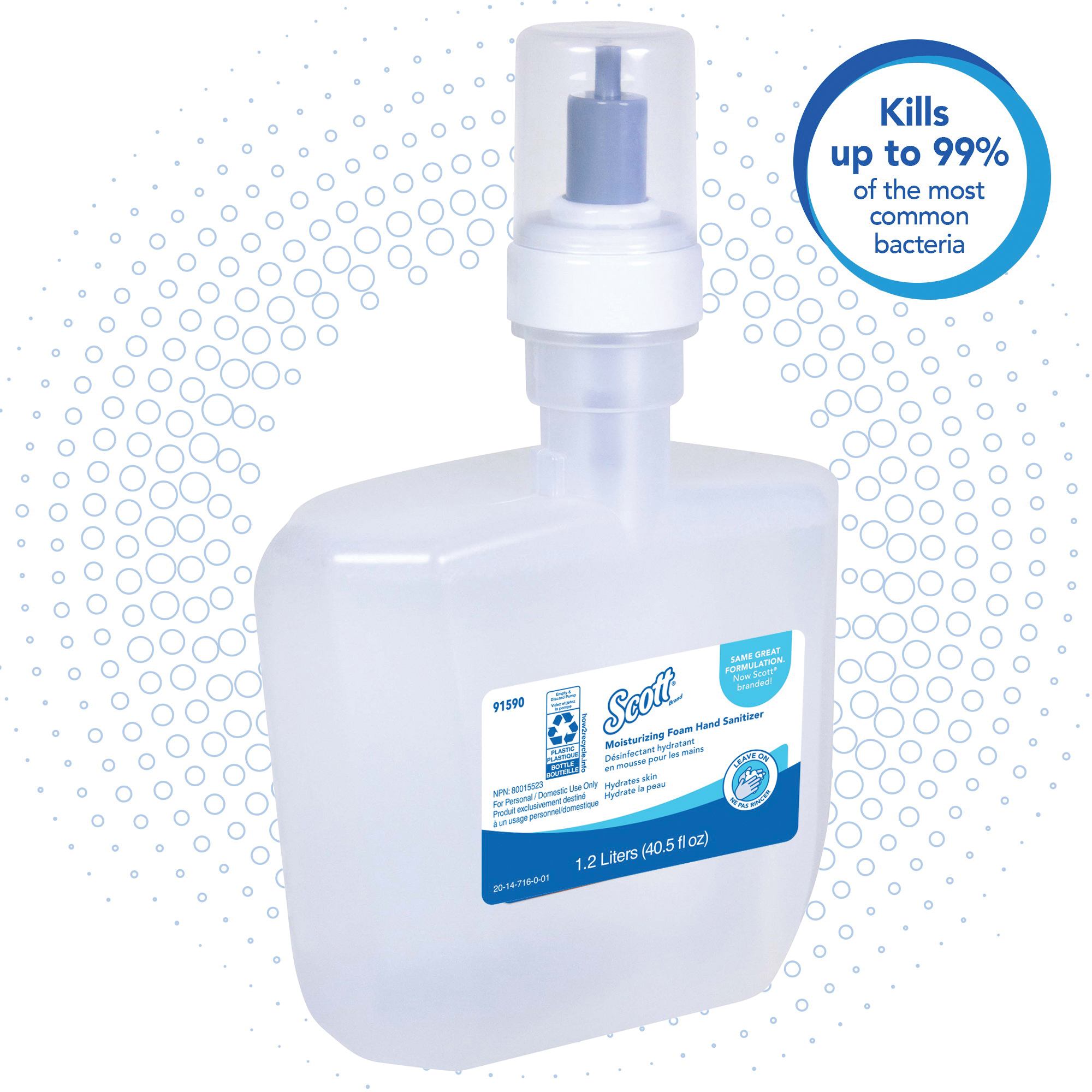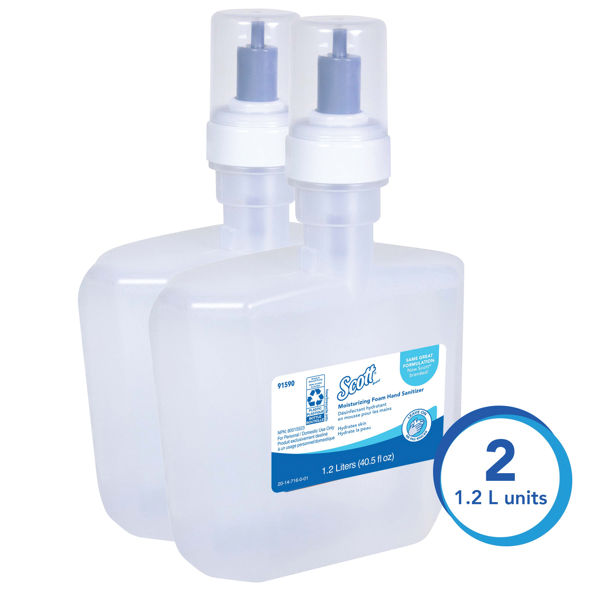 Scott 91590 Moisturizing Foam Hand Sanitizer, 1.2 L Nominal, E-Cassette Package, Gel Form, Pleasant/Fresh Odor/Scent, Clear