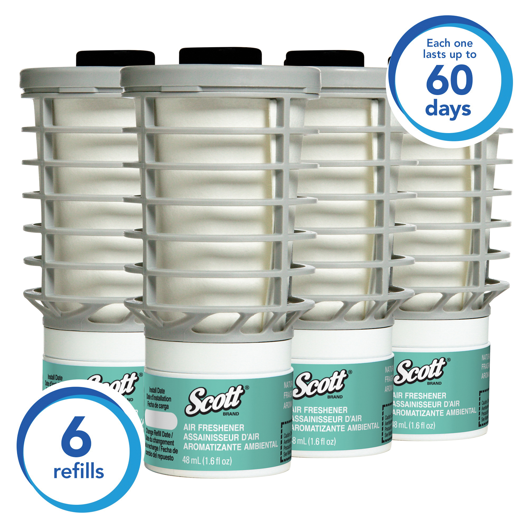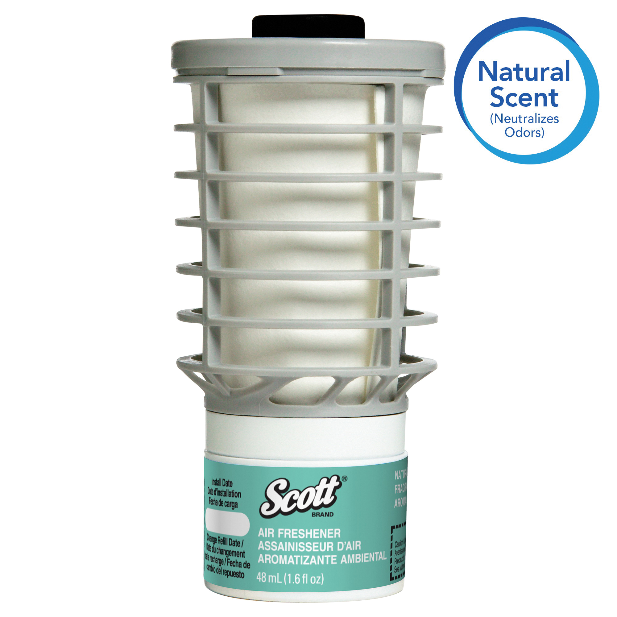 Scott® 12369 Continuous Air Freshener Refill, 4.4 in H x 2.3 in W x 2.3 in D, Natural Scent, For Use With 92620 and 92621 Continuous Air Freshener Dispensers, Clear Glass
