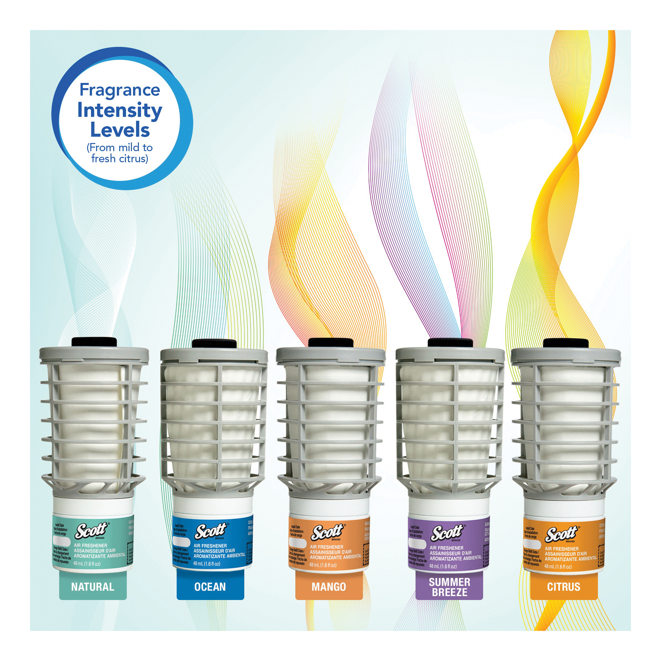 Scott® Air Freshener Refill, Continuous, For Use With: 92620 and 92621 Continuous Air Freshener Dispensers, Specifications: 4.4 in H x 2.3 in W x 2.3 in D, Natural Scent, Clear Glass