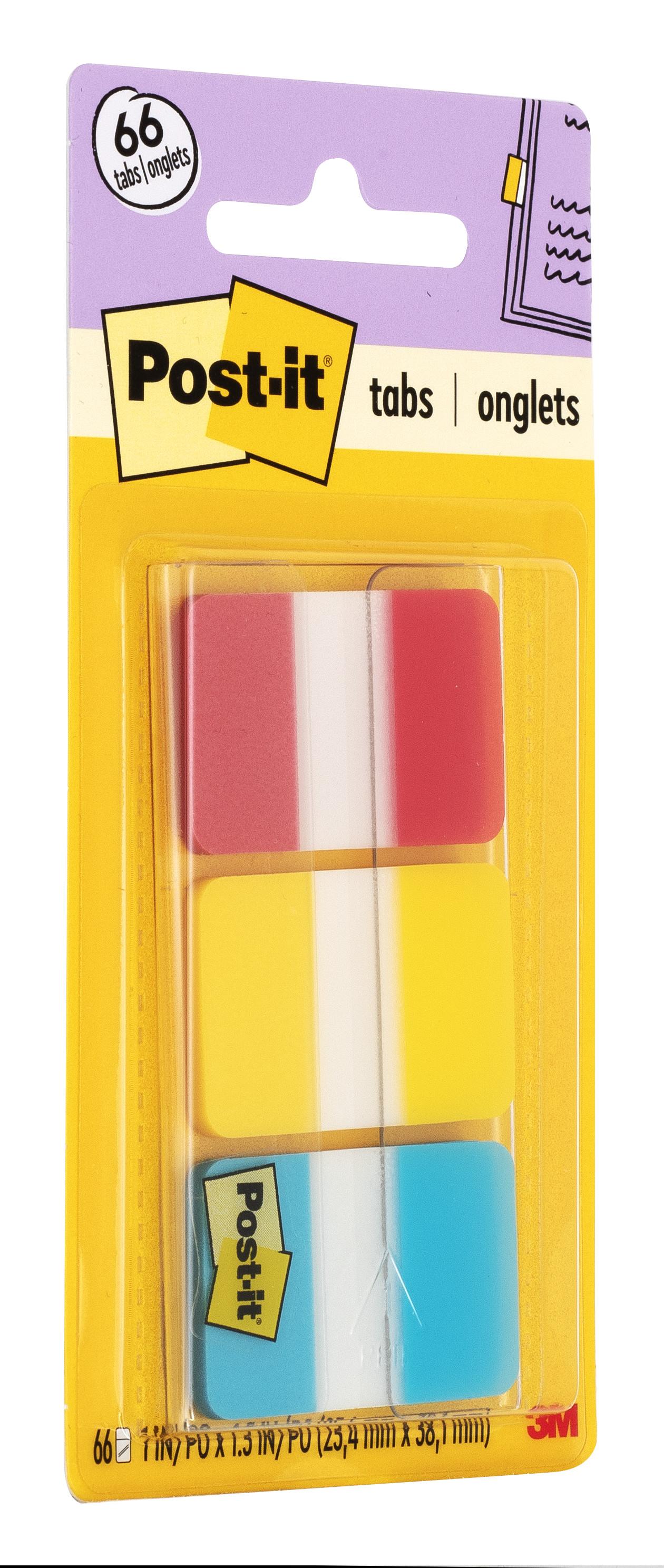 Post-it 7000052679 Solid Flat Tabs, Assorted, 22/Color Tabs, Blue/Red/Yellow Tab