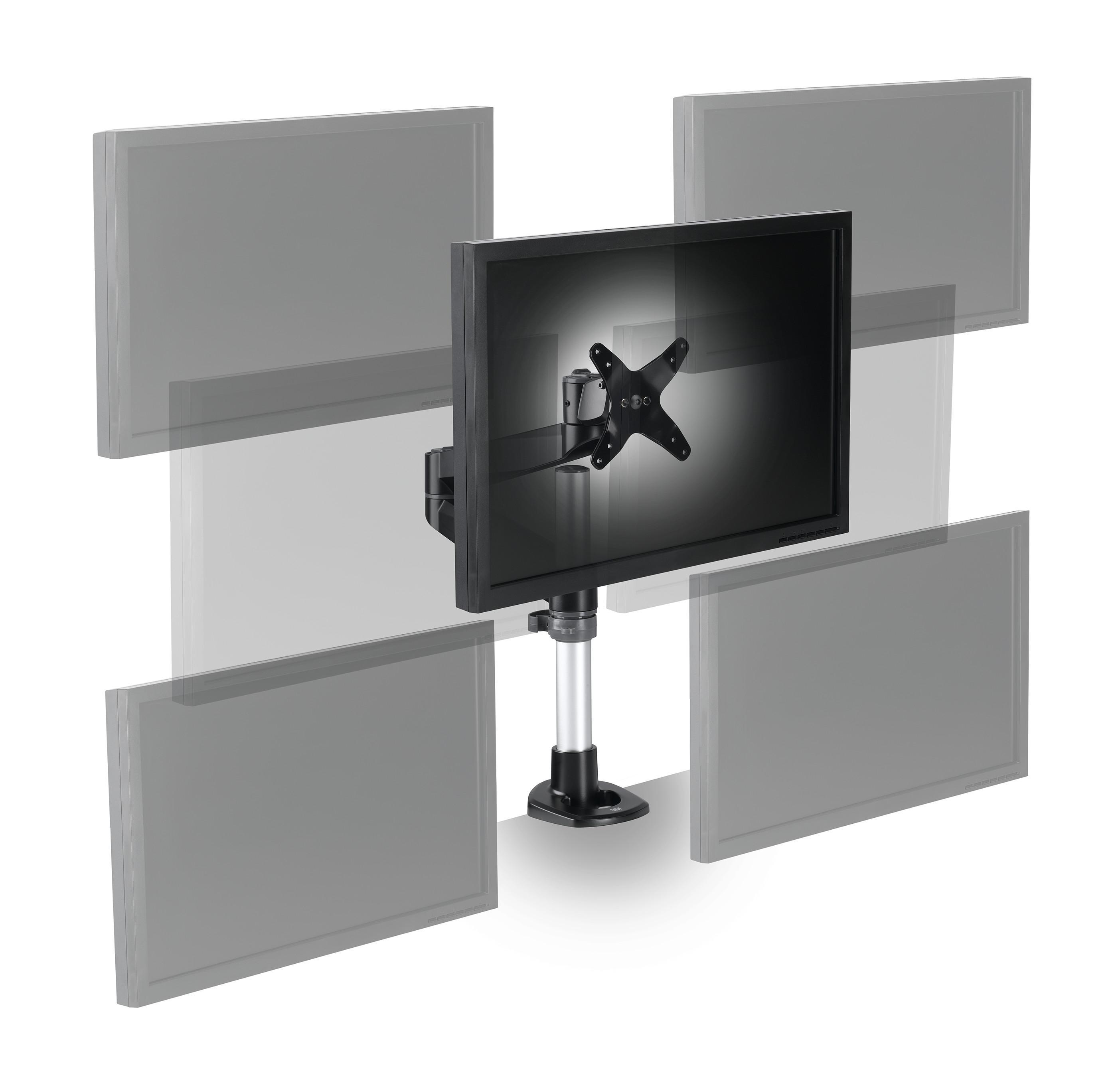 - Capacity:30 lbColor:BlackDimensions:4-1/2 in W x 25-1/2 in DMounting Type:DeskType:Dual Swivel