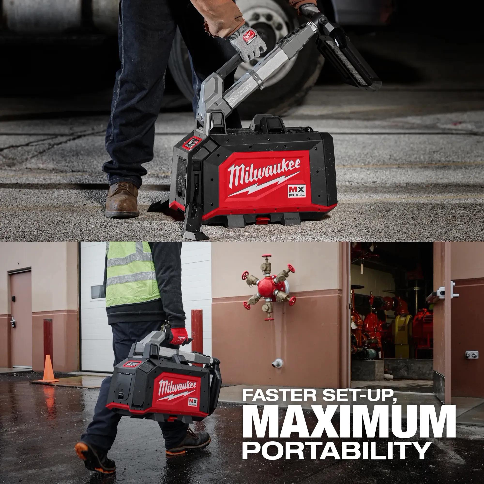 Milwaukee MXF040-1XC MX FUEL ROCKET Dual Power Compact Tower Light, 20 in H x 12 in W x 28.5 in L