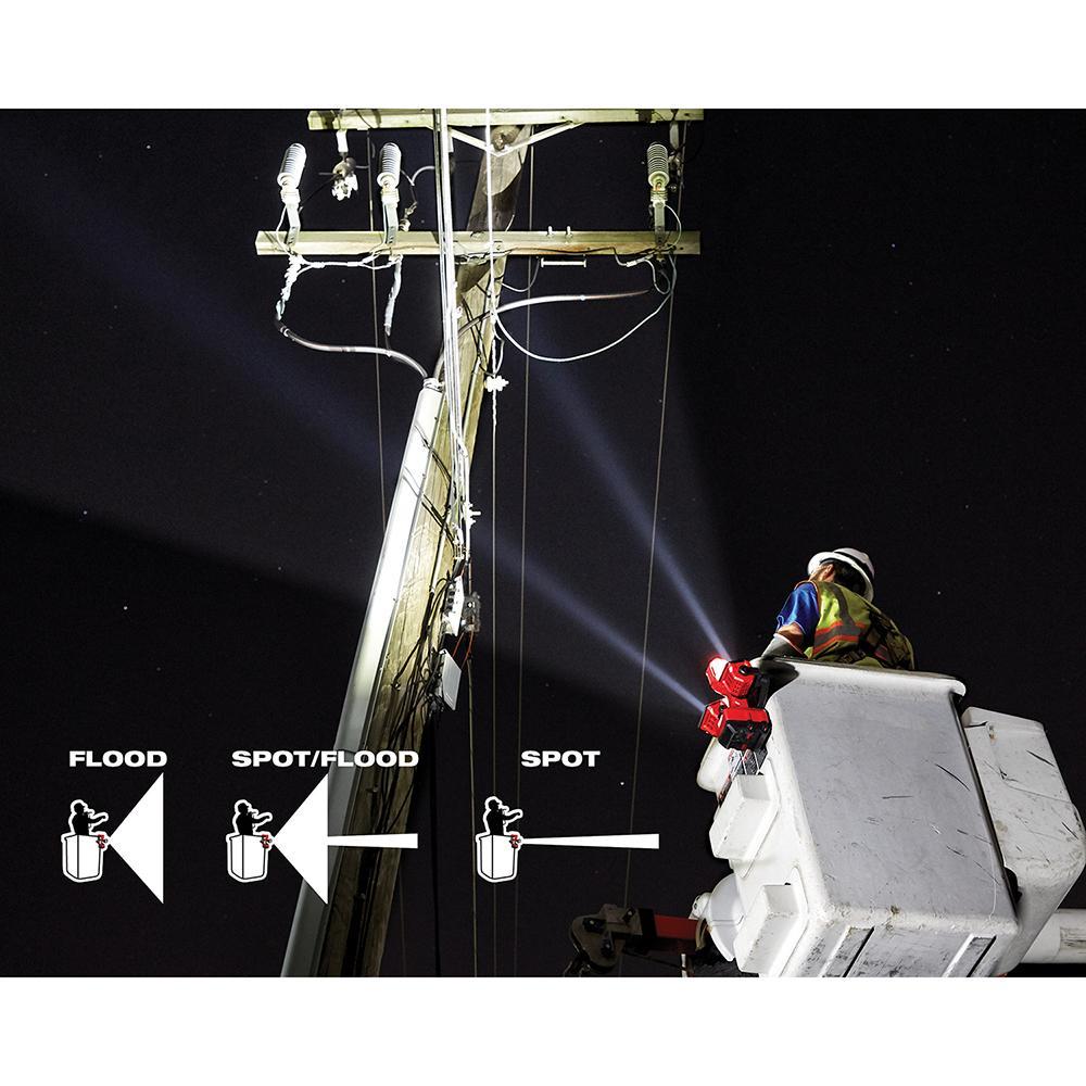 - Spot/flood mode 4 hr with M18 REDLITHIUM™ high demand 9 battery pack