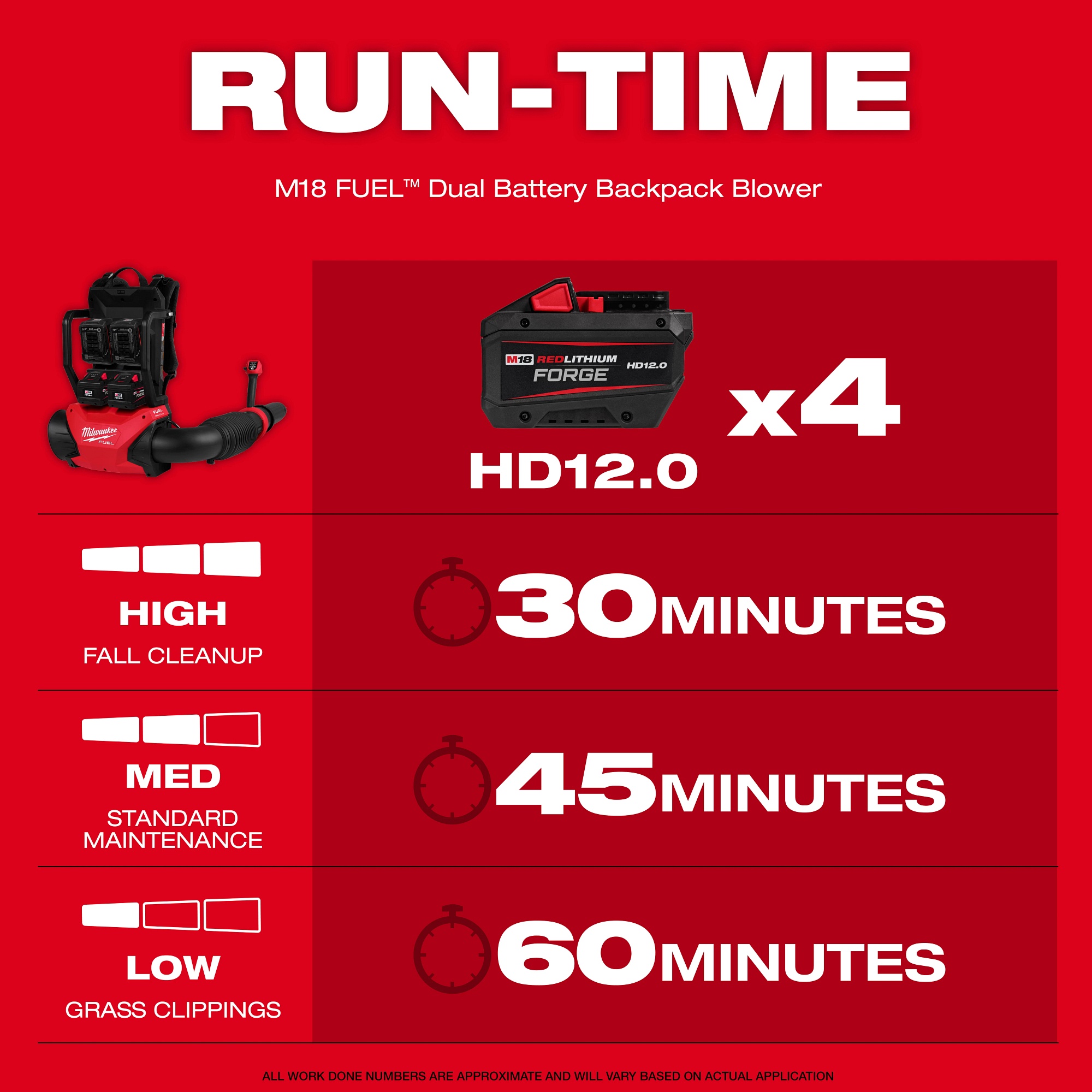 Milwaukee 3009-20 M18 FUEL Dual Battery Backpack Blower, Power Source: Battery