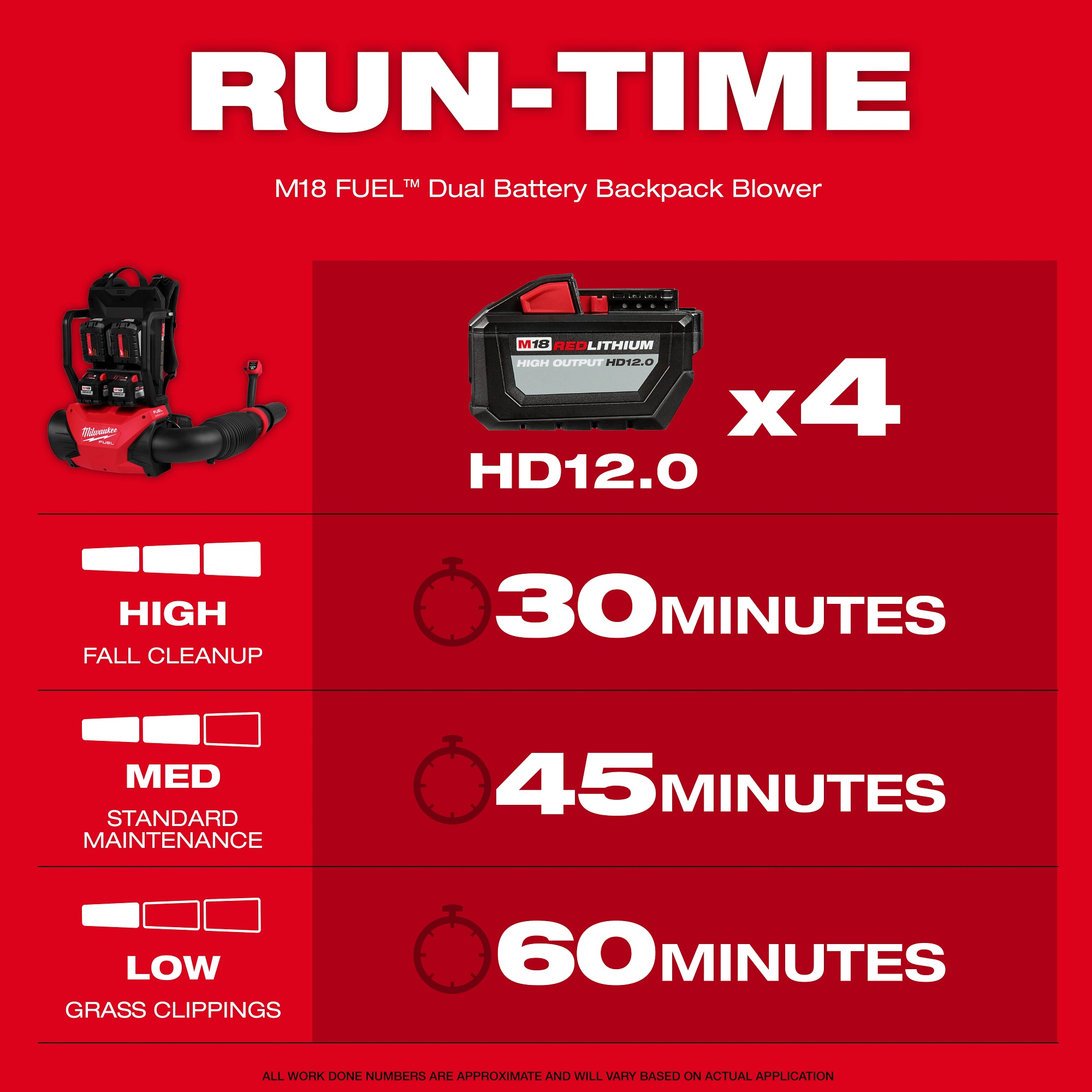 Milwaukee 3009-24HD M18 FUEL Dual Battery Backpack Blower Kit, Power Source: Battery