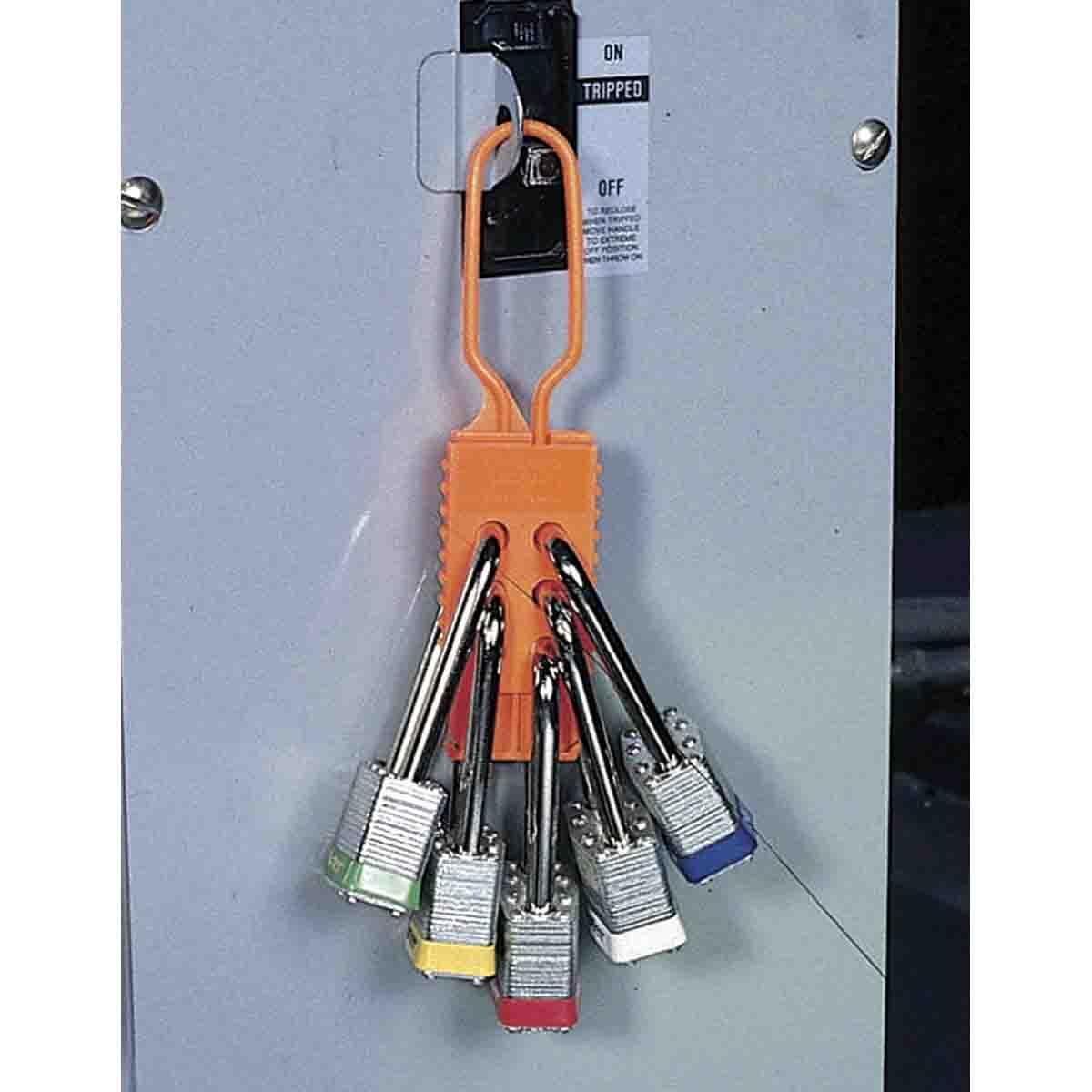 Brady 99668 Non-Conductive Snap-In Lockout Hasp, 6 Padlocks, 0.378 in Dia Max Padlock Shackle, Nylon