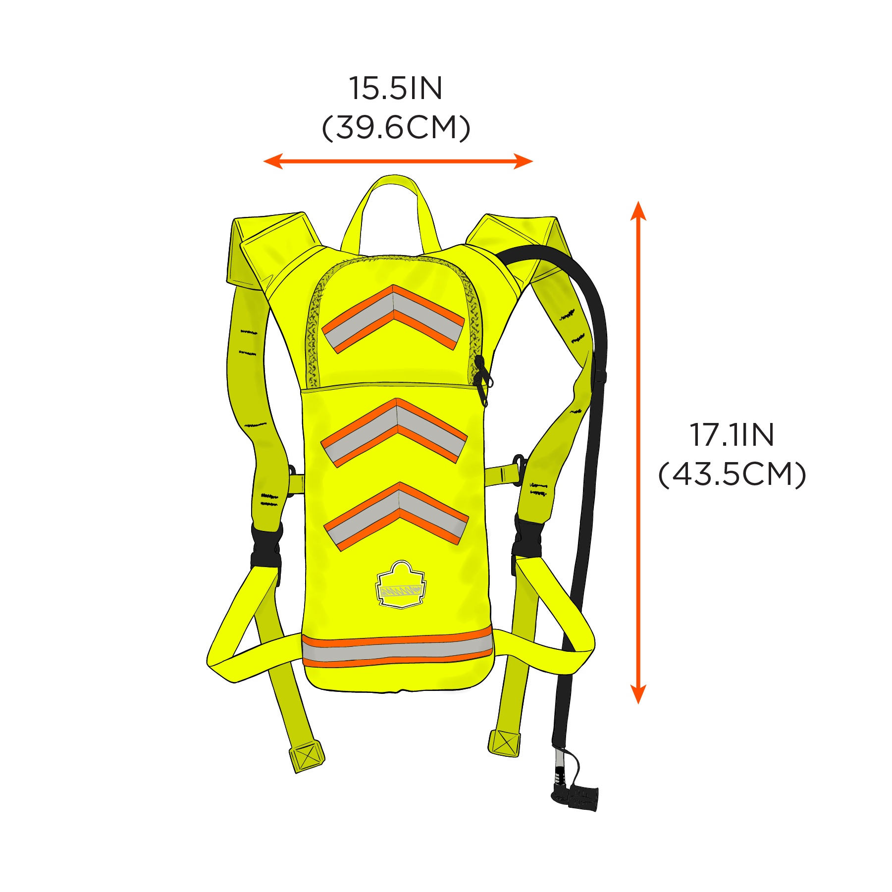 Chill-Its 13156 5155HV Low Profile Hydration Pack, 2 L/70 oz/2.2 hr, 600D Polyester Shell/EVA Reservoir, Hi-Viz Lime, Zipper Closure