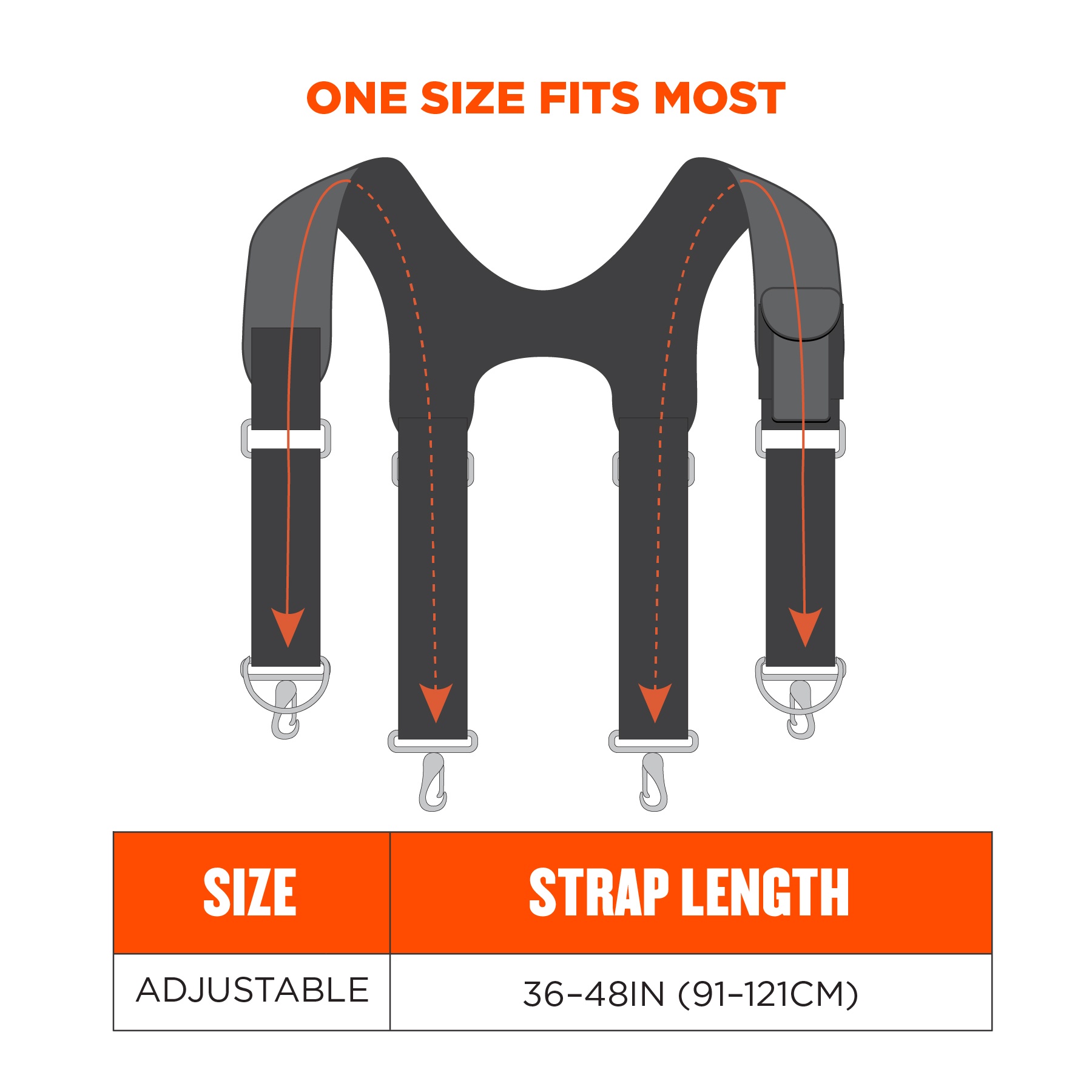 - Quick-adjust suspender style