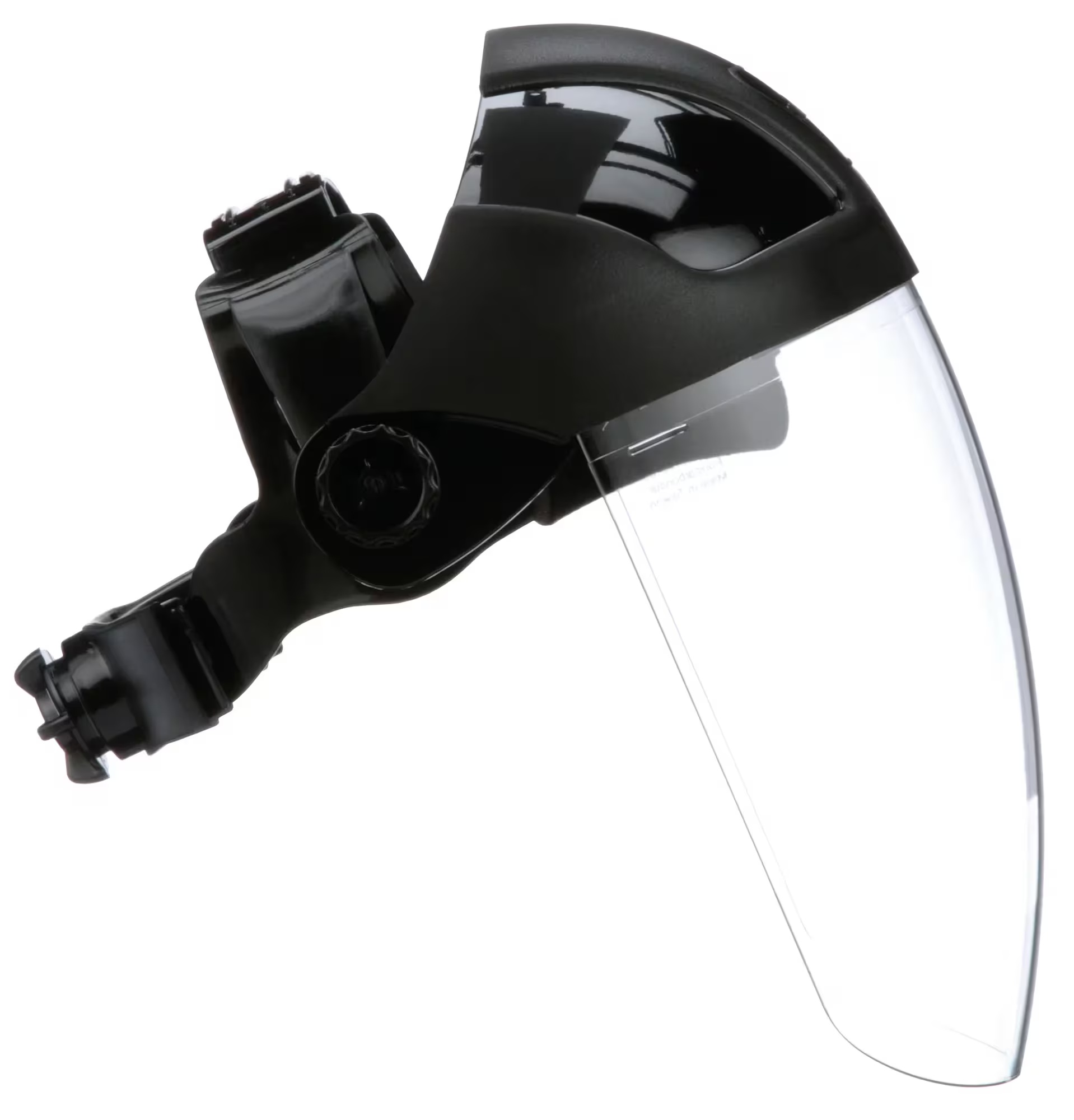 - Headgear Color:BlackHeadgear Material:NylonSuspension Type:RatchetVisor Color:ClearVisor Height:8 inVisor Material:Polycarbonate GlassVisor Thickness:0.06 inVisor Width:8 in