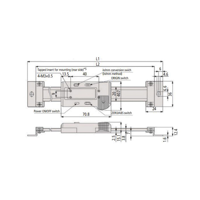 Mitutoyo ABSOLUTE® Digimatic Scale Unit, Horizontal Imperial/Metric Single Function, Series: 572, 0 to 4 in, 0.001 in Accuracy, 0.0005 in Resolution, LCD Display, 209 mm Overall Length, 185 mm Beam Length, 3.8 mm Beam Thickness
