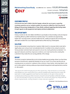 For our service, we’ve received several honors. Sandvik Coromant has recognized us as their Largest Independent Yellow Coat Certified Supplier, and we were the 2015 Supplier of the Year and the first supplier for Fullerton. We’ve also been the Guhring Growth Incentive Program Supplier, Stellar’s Lenox Certified Weld Center was chosen 2017 Supplier of the Year, and our Master Fluid Solutions Premier Distributor Partner was chosen as the 2016 Stellar Supplier of the Year.
