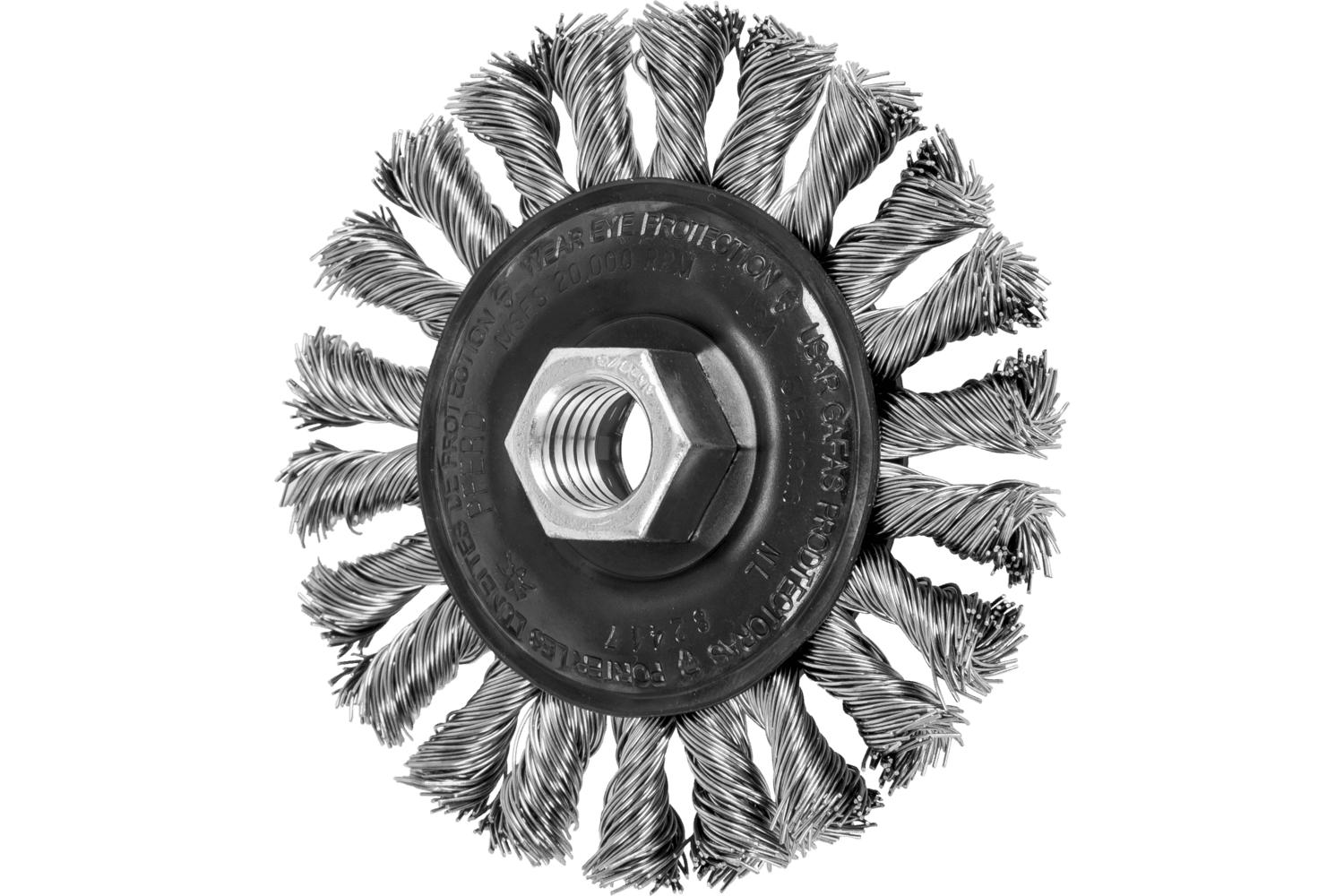 - Arbor Hole Size:5/8-11Attachment Type:Threaded ArborBrush Diameter:4 inFace Width:3/8 inFilament/Wire Diameter:0.02 inFilament/Wire Type:Full Cable Twist KnotFill Material:Stainless SteelMaximum Speed:20000 rpmTrim Length:3/4 in