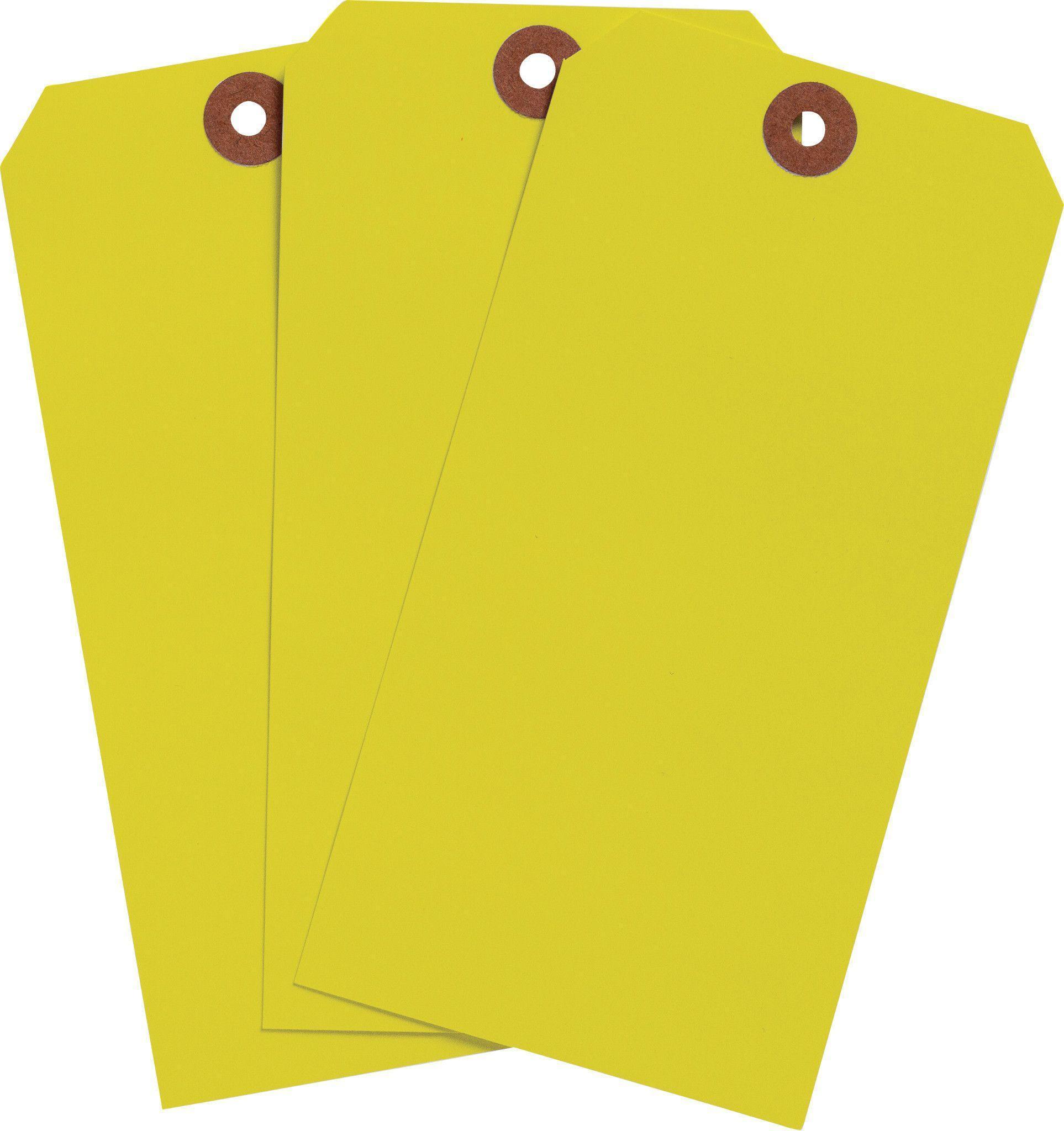 - Color:Fluorescent YellowGrommet Type:PaperHeight:5-1/4 inMaterial:CardstockShape:Rectangle, RectangularType:Heavy Duty Write-OnWidth:2-5/8 in