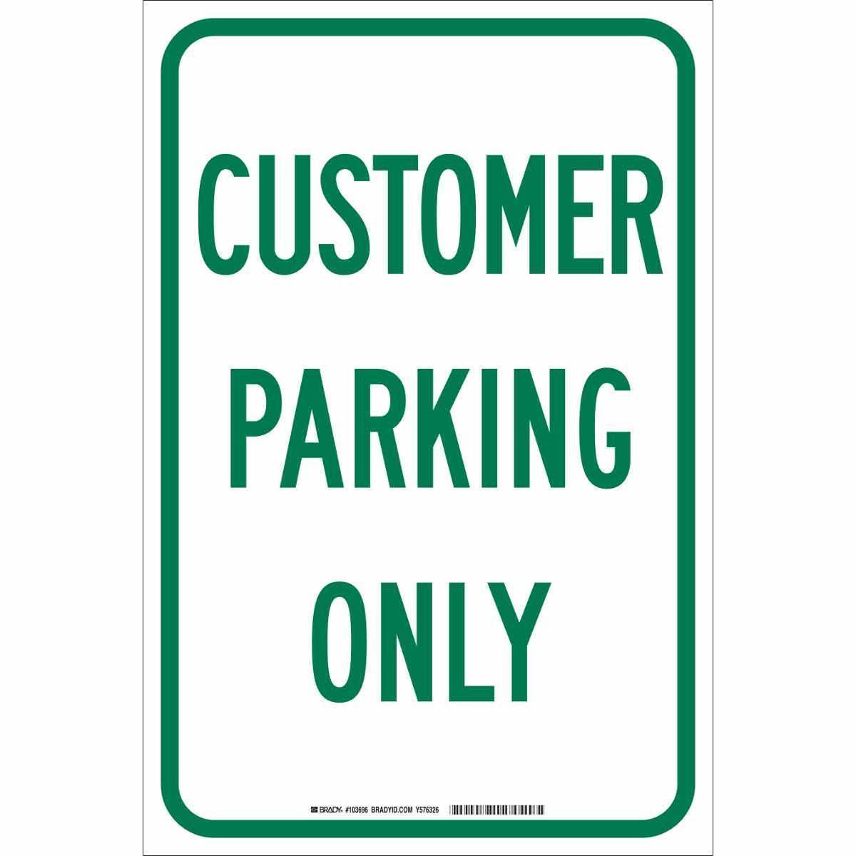 - Height:18 inLegend:CUSTOMER PARKING ONLYLegend Style:TextLegend/Background Color:Green on WhiteMaterial:B-959 AluminumMounting Type:PostType:RectangularWidth:12 in