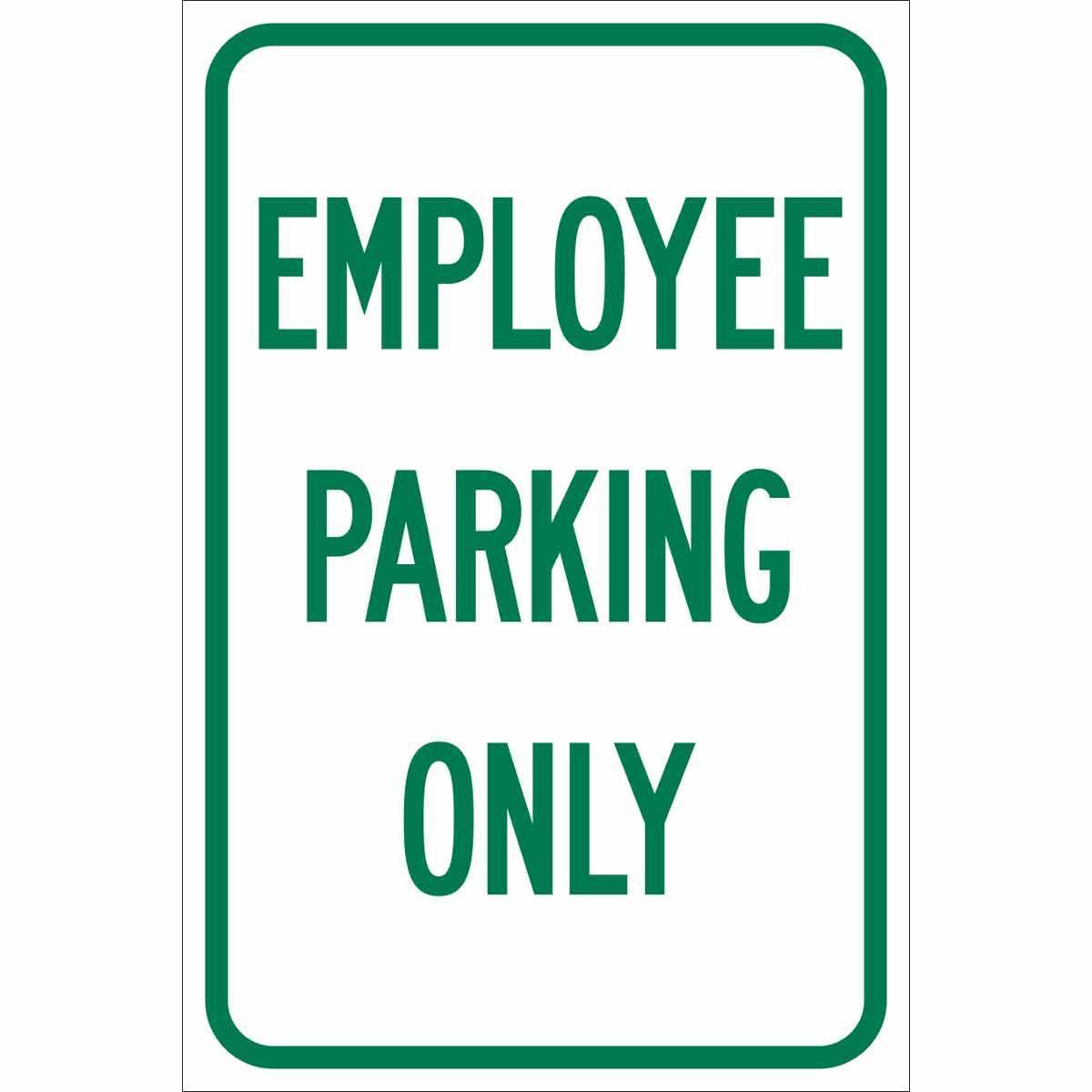 - Height:18 inLegend:EMPLOYEE PARKING ONLYLegend Style:TextLegend/Background Color:Green on WhiteMaterial:B-959 AluminumMounting Type:Fastened, PostType:RectangularWidth:12 in