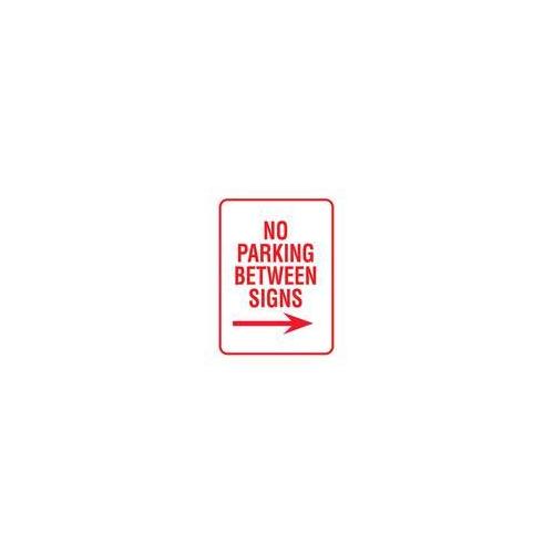 - Height:18 inLegend:NO PARKING BETWEEN SIGNS with Right Arrow SymbolLegend Style:Symbol/TextLegend/Background Color:Red on WhiteMaterial:B-959 AluminumType:RectangularWidth:12 in