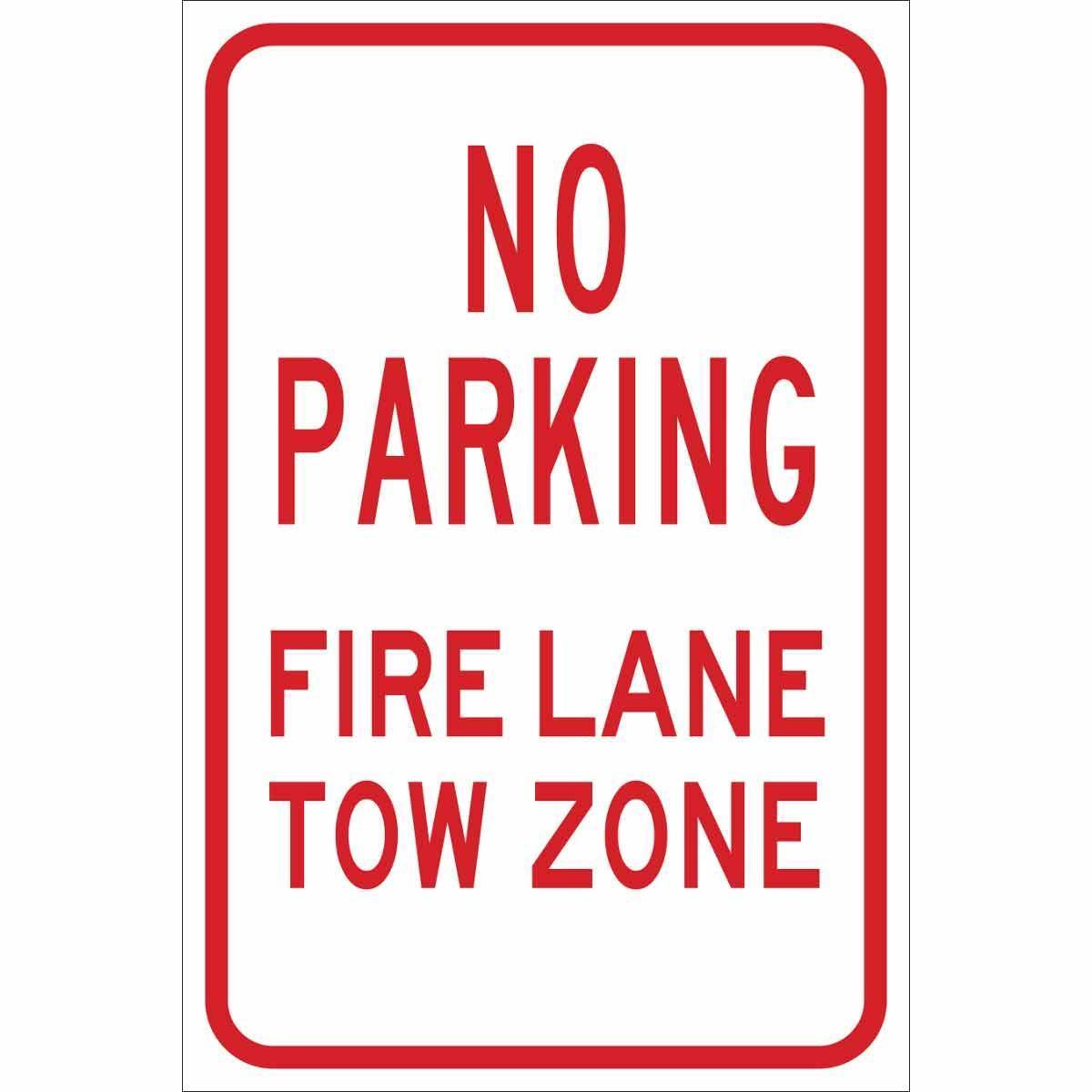- Height:18 inLegend:NO PARKING FIRE LANE TOW ZONELegend Style:TextLegend/Background Color:Red on WhiteMaterial:B-959 AluminumMounting Type:FastenedType:RectangularWidth:12 in