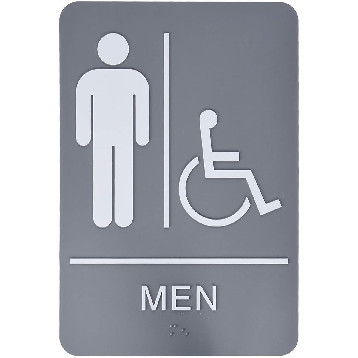 - Header:No HeaderHeight:9 inLanguage:Braille/EnglishLegend:MENLegend Style:TextLegend/Background Color:White on GrayMaterial:B-401 PolystyreneType:Bilingual RectangularWidth:6 in