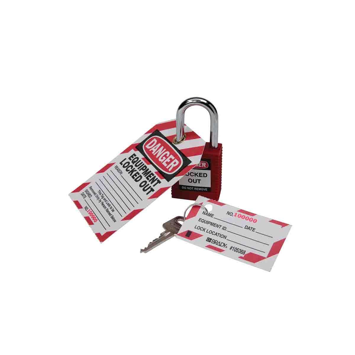 Brady WKT3 Rectangular Lockout Tag, 5-3/4 in H x 3 in W, Black/Red on White, 1 in Hole, B-853 Cardstock