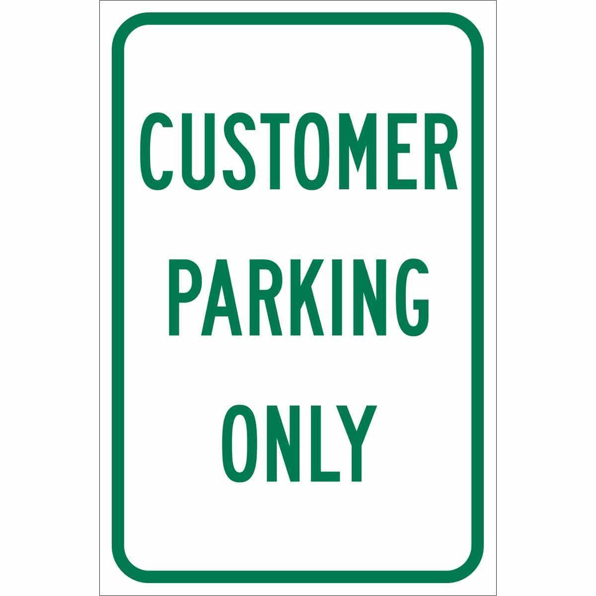 - Height:18 inLegend:CUSTOMER PARKING ONLYLegend Style:TextLegend/Background Color:Green on WhiteMaterial:B-959 AluminumMounting Type:FastenedType:RectangularWidth:12 in