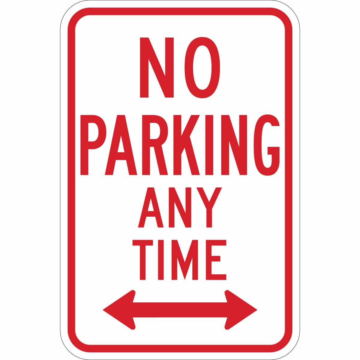 - Height:18 inLegend:NO PARKING ANY TIMELegend Style:Symbol/TextLegend/Background Color:Red on WhiteMaterial:B-959 AluminumType:RectangularWidth:12 in