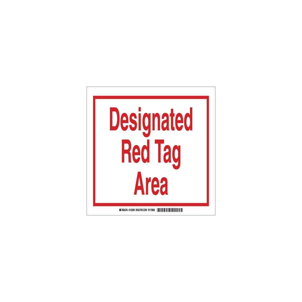 Brady 122269 Laminated Rectangular Tag Area Sign, 7 in H x 10 in W, Red on White, B-302 Polyester, Adhesive Mount