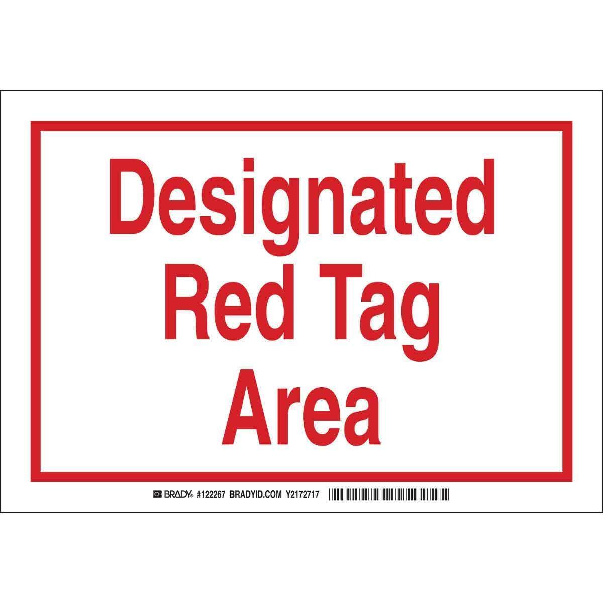 Brady 122293 Laminated Rectangular Tag Area Sign, 10 in H x 14 in W, Red on White, B-302 Polyester, Adhesive Mount