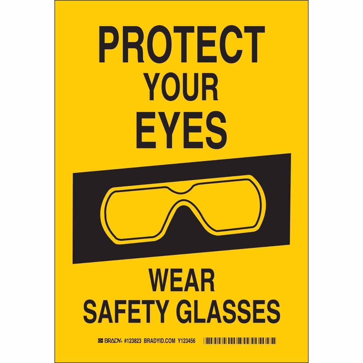 Brady 123824 Rectangular Personal Protection (PPE) Sign, 14 in H x 10 in W, Black on Yellow, B-555 Aluminum, Fastened Mount