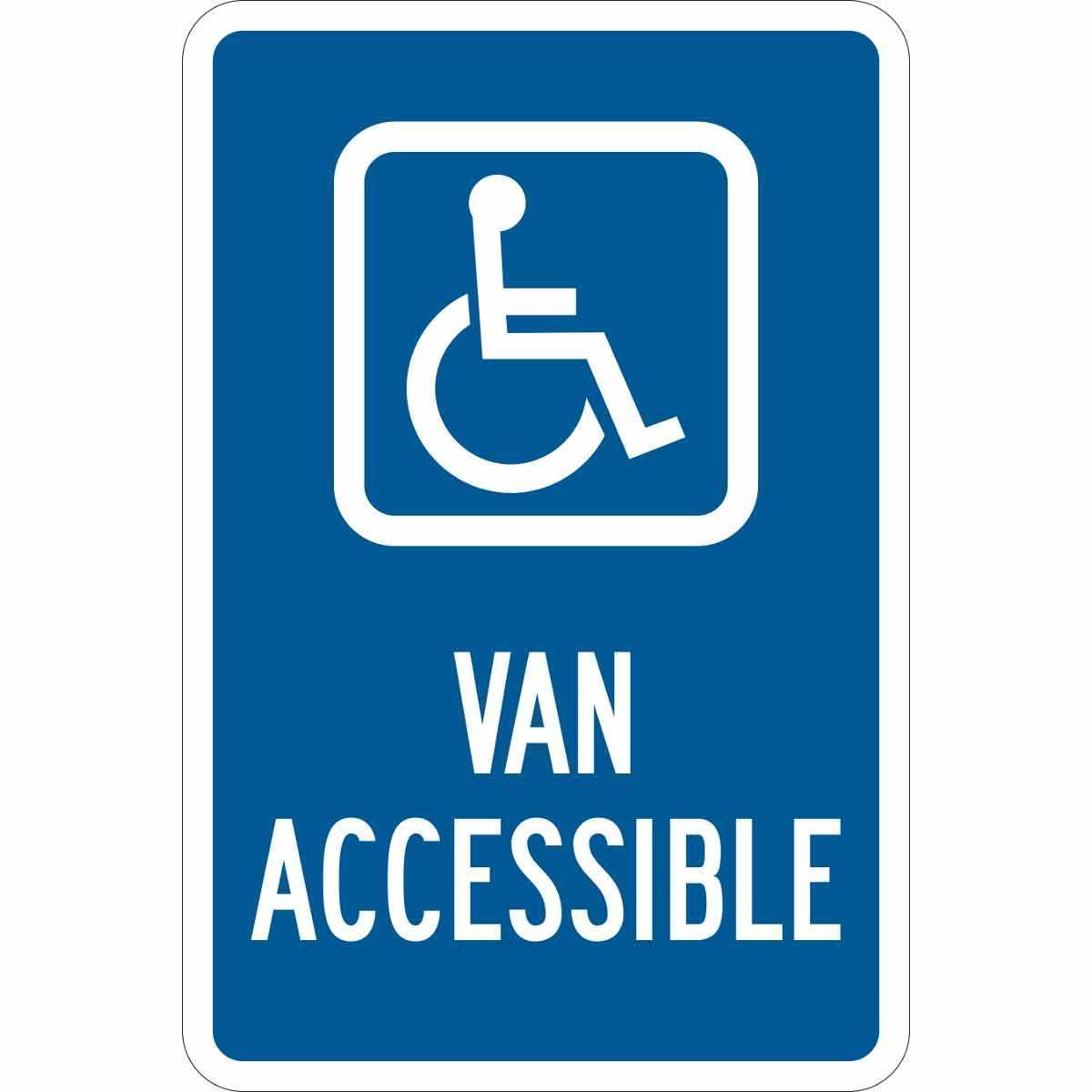- Height:18 inLegend:VAN ACCESSIBLELegend Style:Symbol/TextLegend/Background Color:White on BlueMaterial:B-555 AluminumMounting Type:Corner Hole, Corner Holes, FastenedType:RectangularWidth:12 in