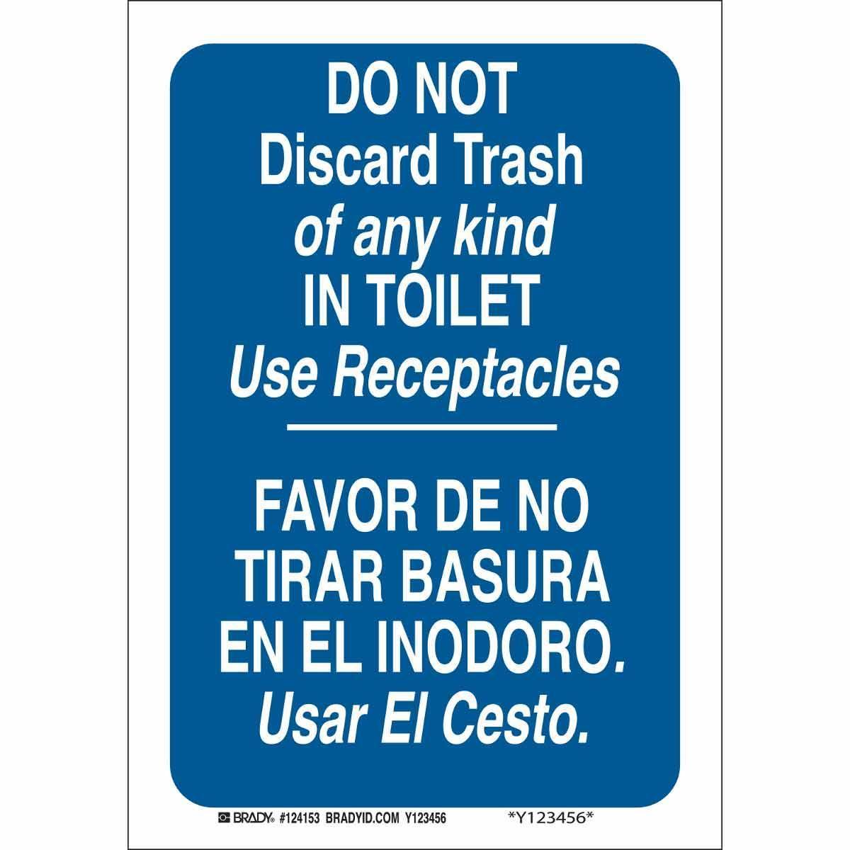 Brady 124156 Rectangular Restroom Sign, Text, B-302 Polyester, Adhesive Mount, 14 in H x 10 in W, White on Blue, English/Spanish