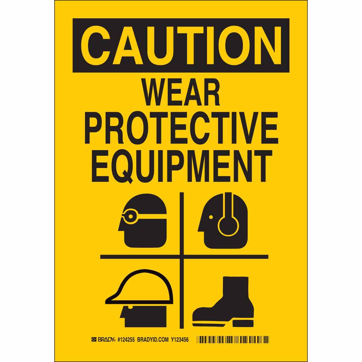 Brady 124257 Rectangular Personal Protection (PPE) Sign, CAUTION, 14 in H x 10 in W, Black on Yellow, B-401 Polystyrene, Fastened Mount